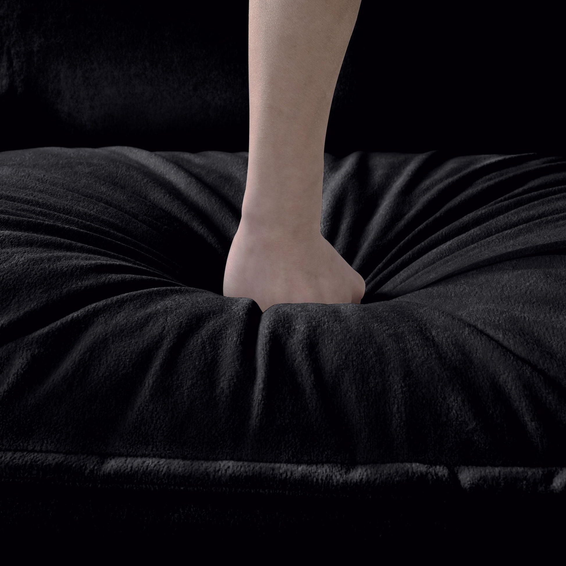 Oversized Deep Seat Sectional Cloud Sofa Sleeper With 3 Ottomans & Soft Pillows, Modular Couch Bed - Black