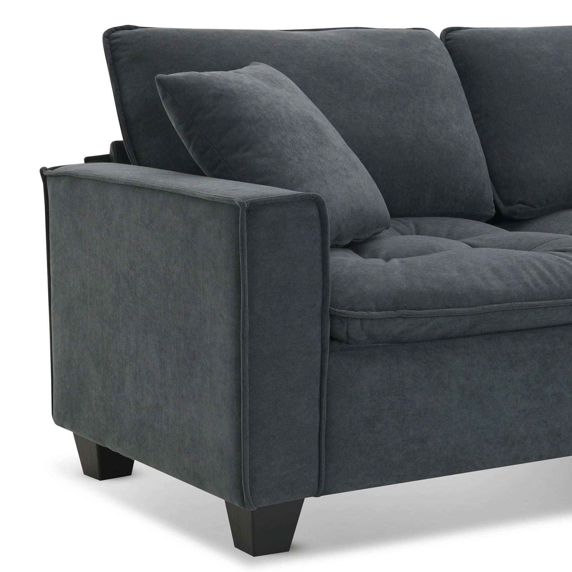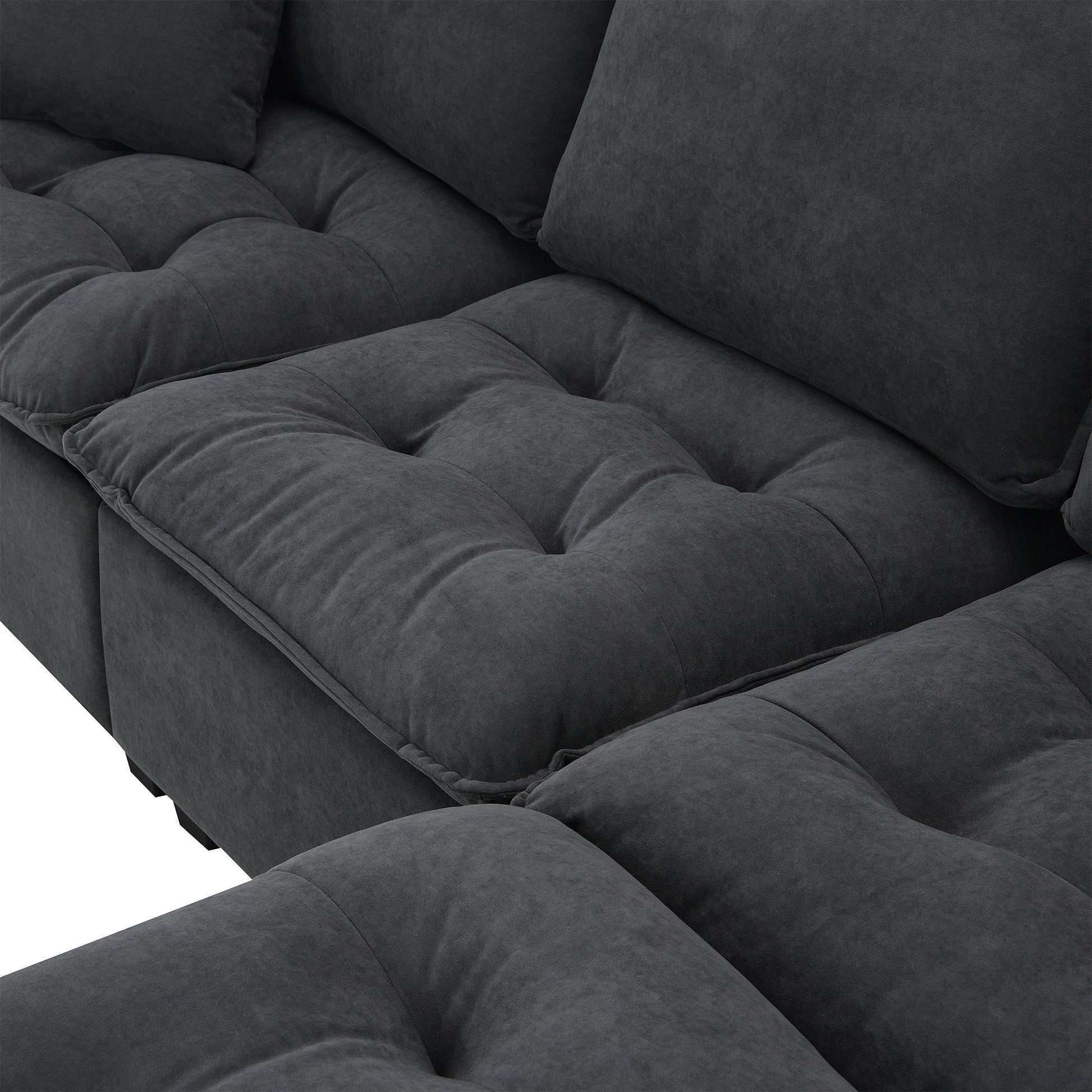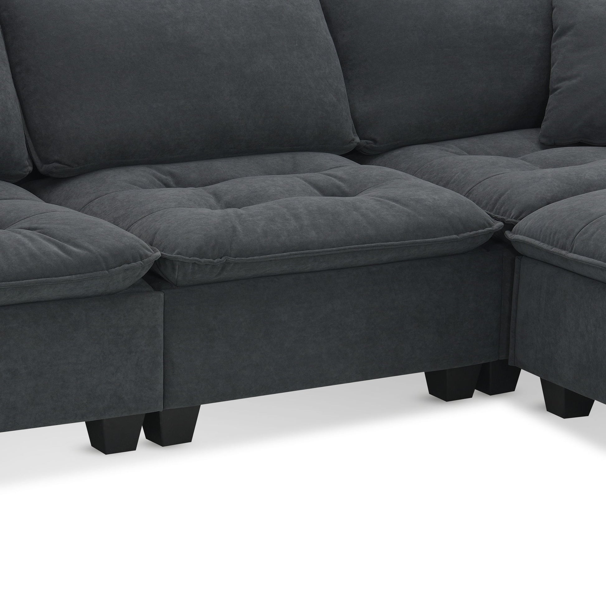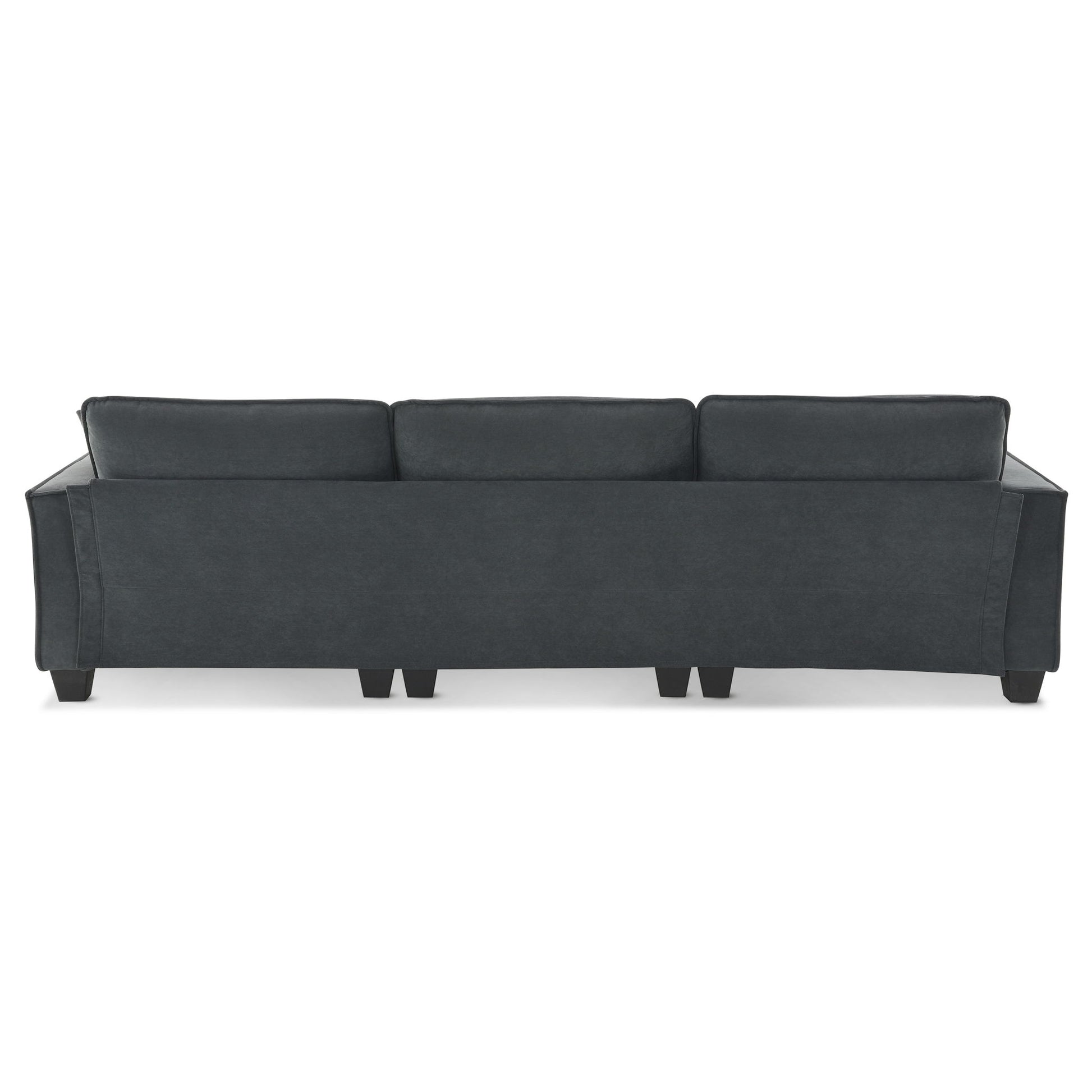 Modern Convertible Sectional L Shaped Reversible Couch Set With Free Pillows 4 Seat Suede Sleeper Sofa With Ottoman - Dark Gray