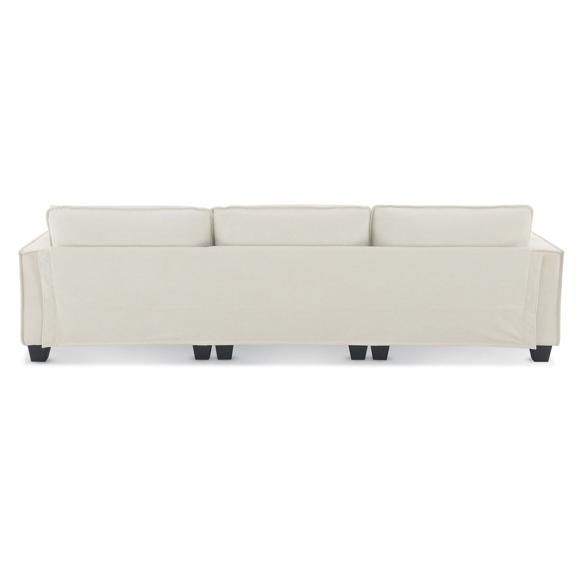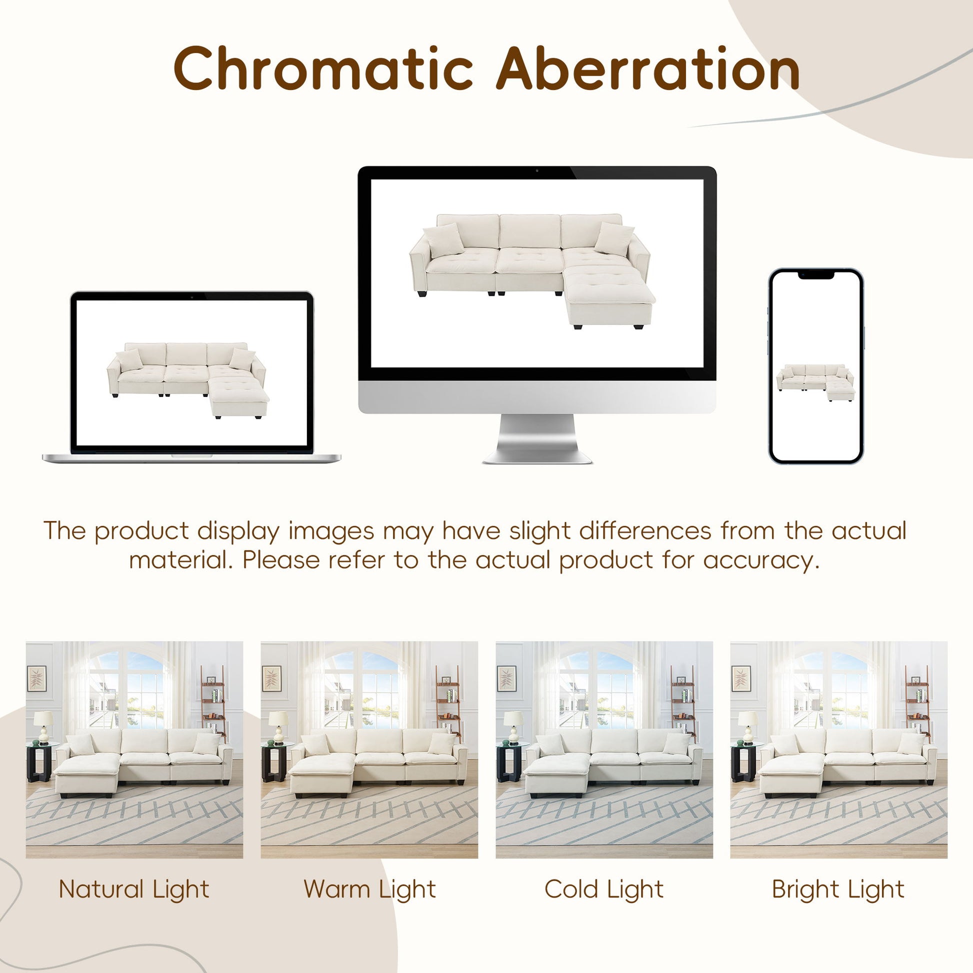 Modern Convertible Sectional L Shaped Reversible Couch Set With Free Pillows 4 Seat Suede Sleeper Sofa With Ottoman - Beige