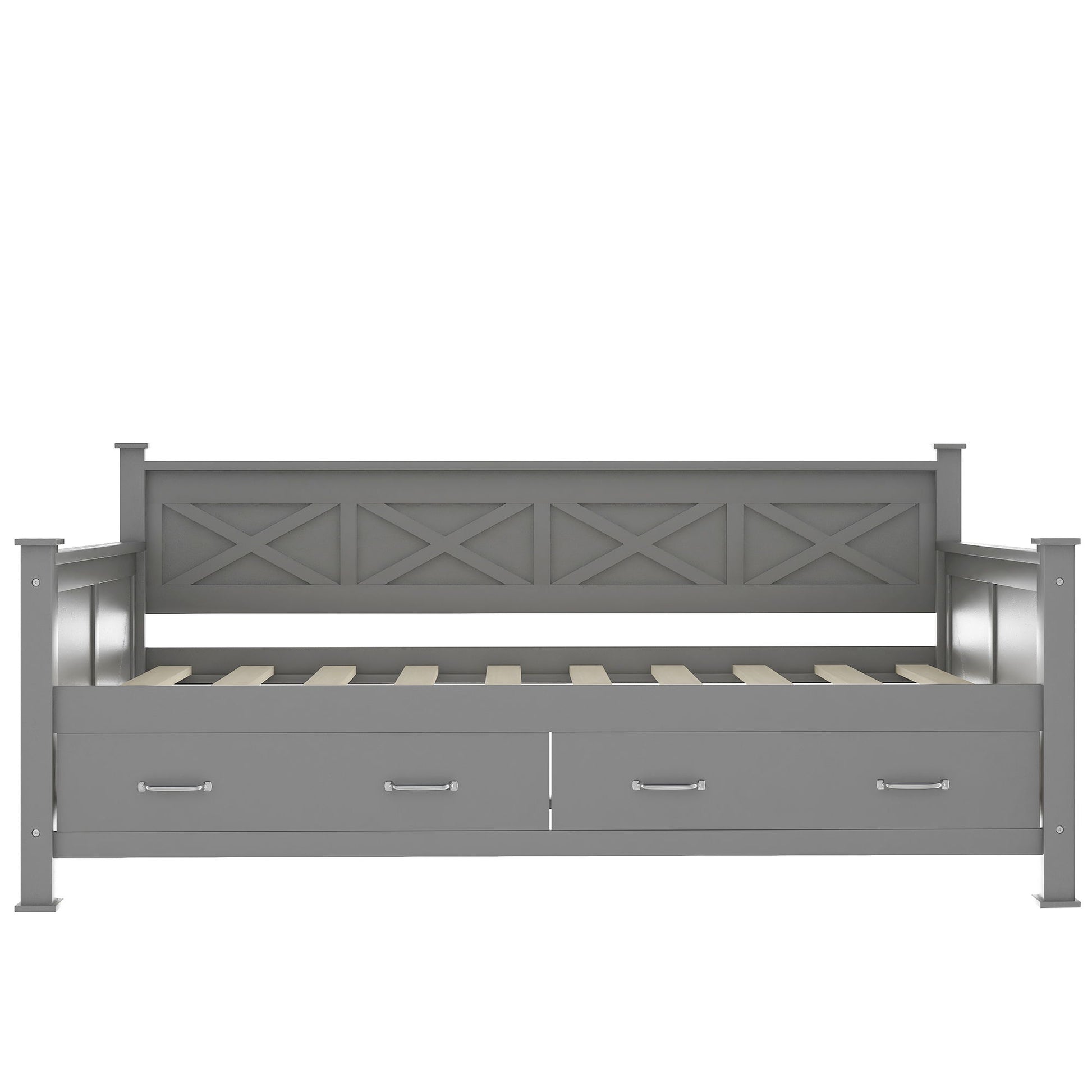 Twin Daybed With 2 Large Drawers, X Shaped Frame - Gray