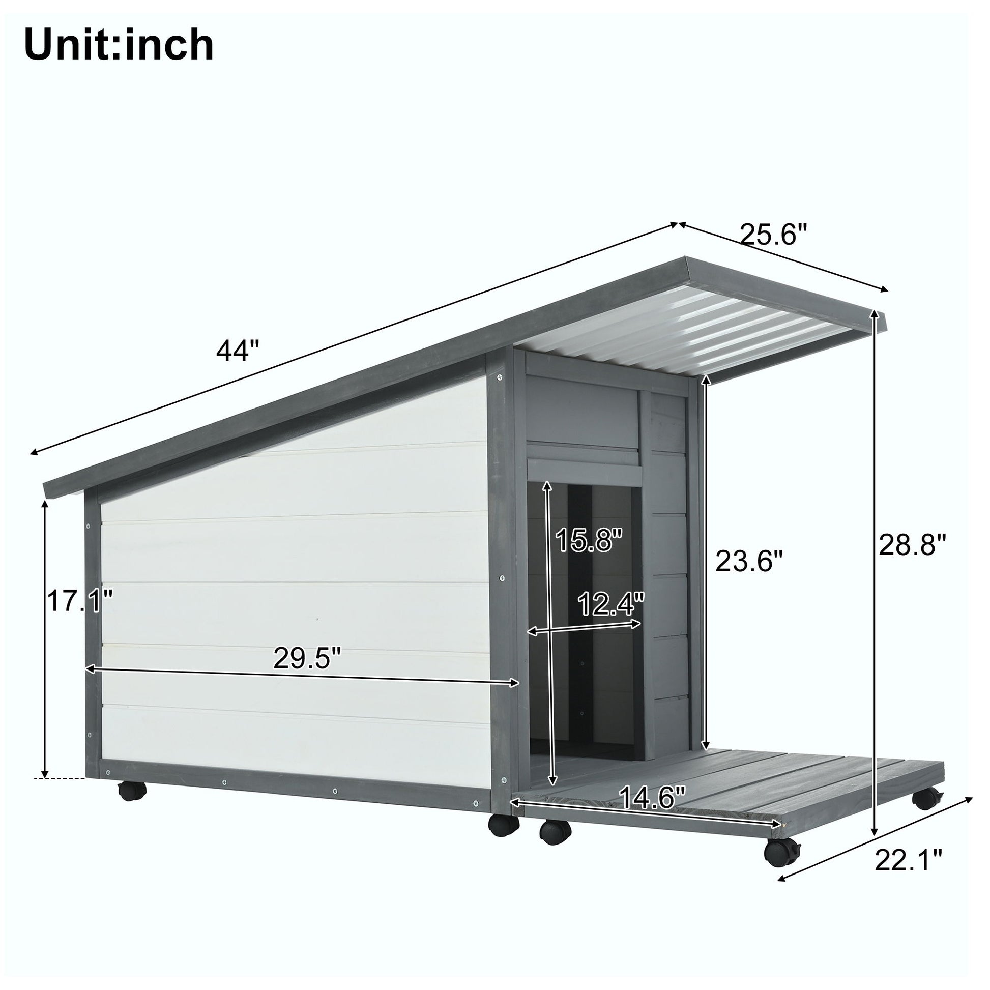 Modern Design Outdoor Dog House With Food Bowl And Wheels Pine - Gray / White