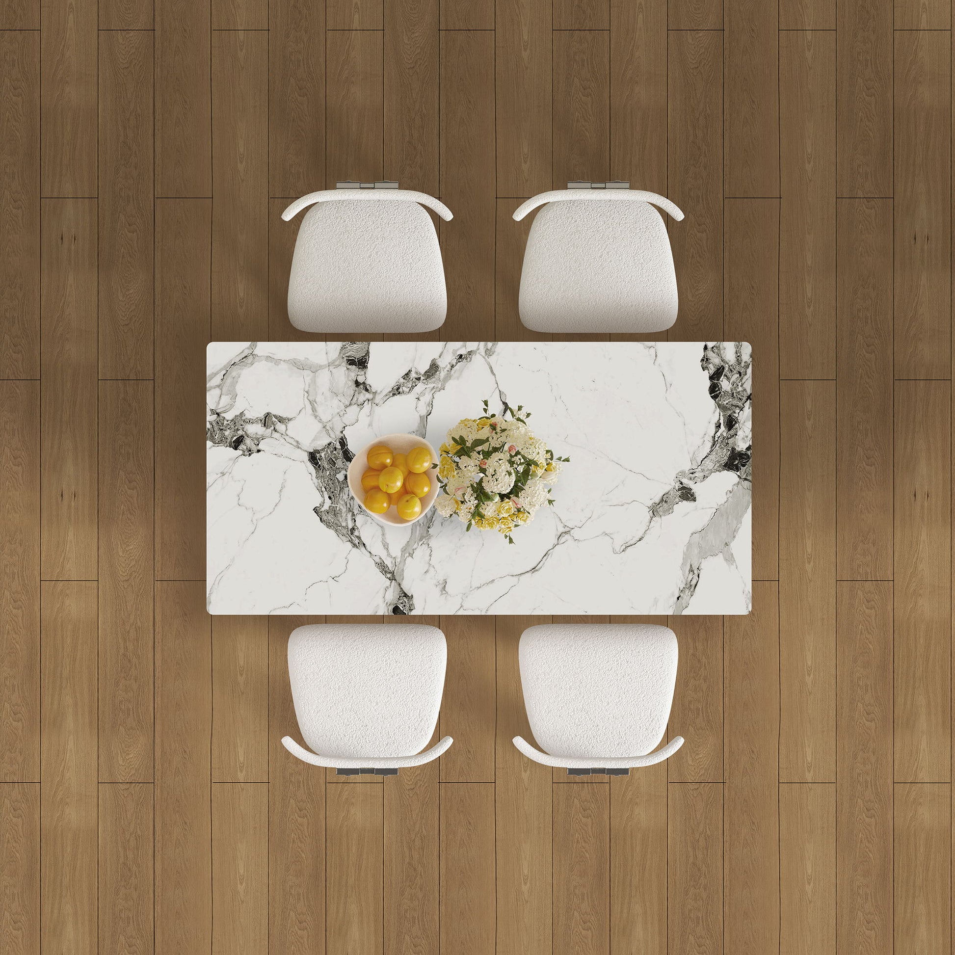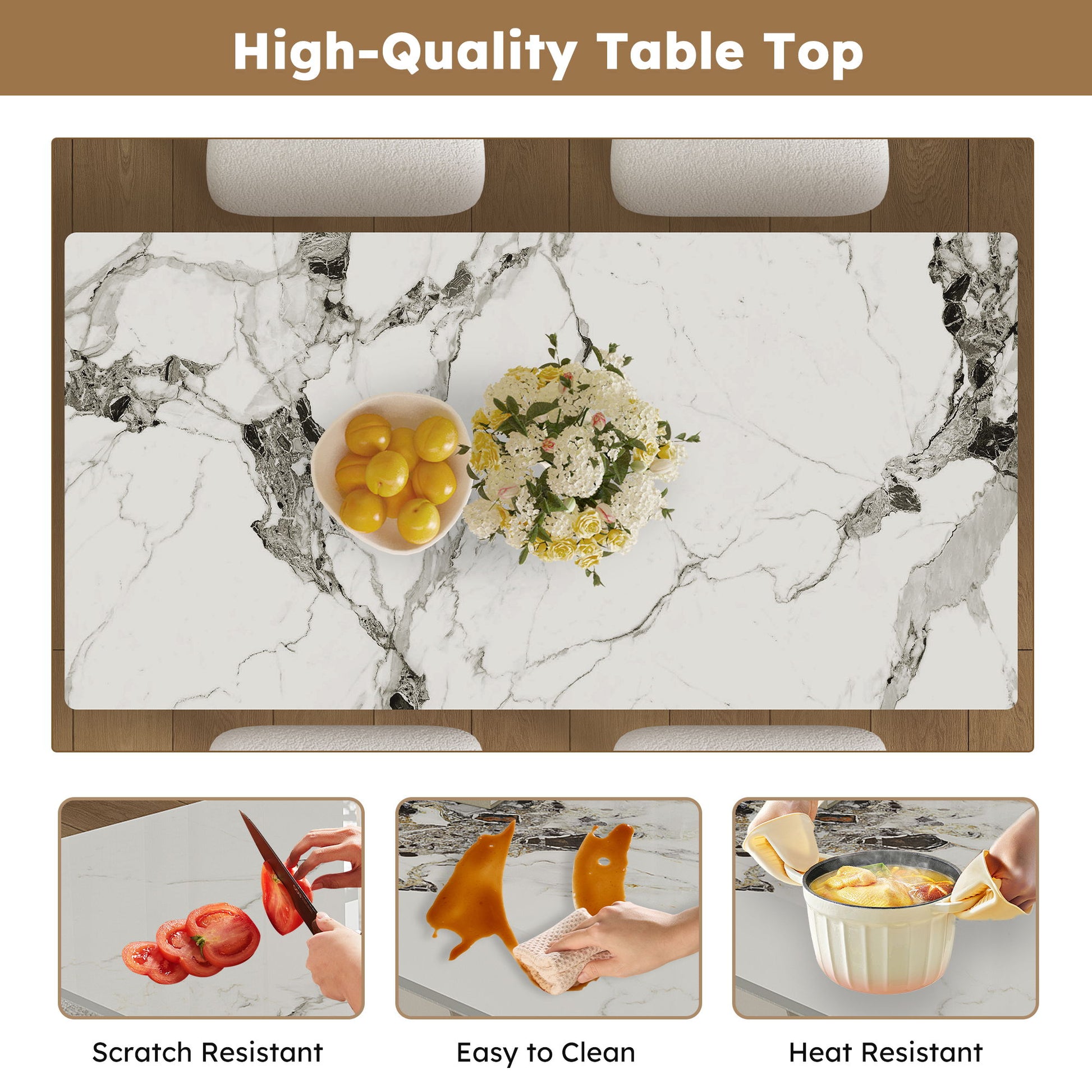 - COMFORTABLE VELVET CHAIRS: Soft white velvet upholstery ensures cozy seating for extended dining sessions.