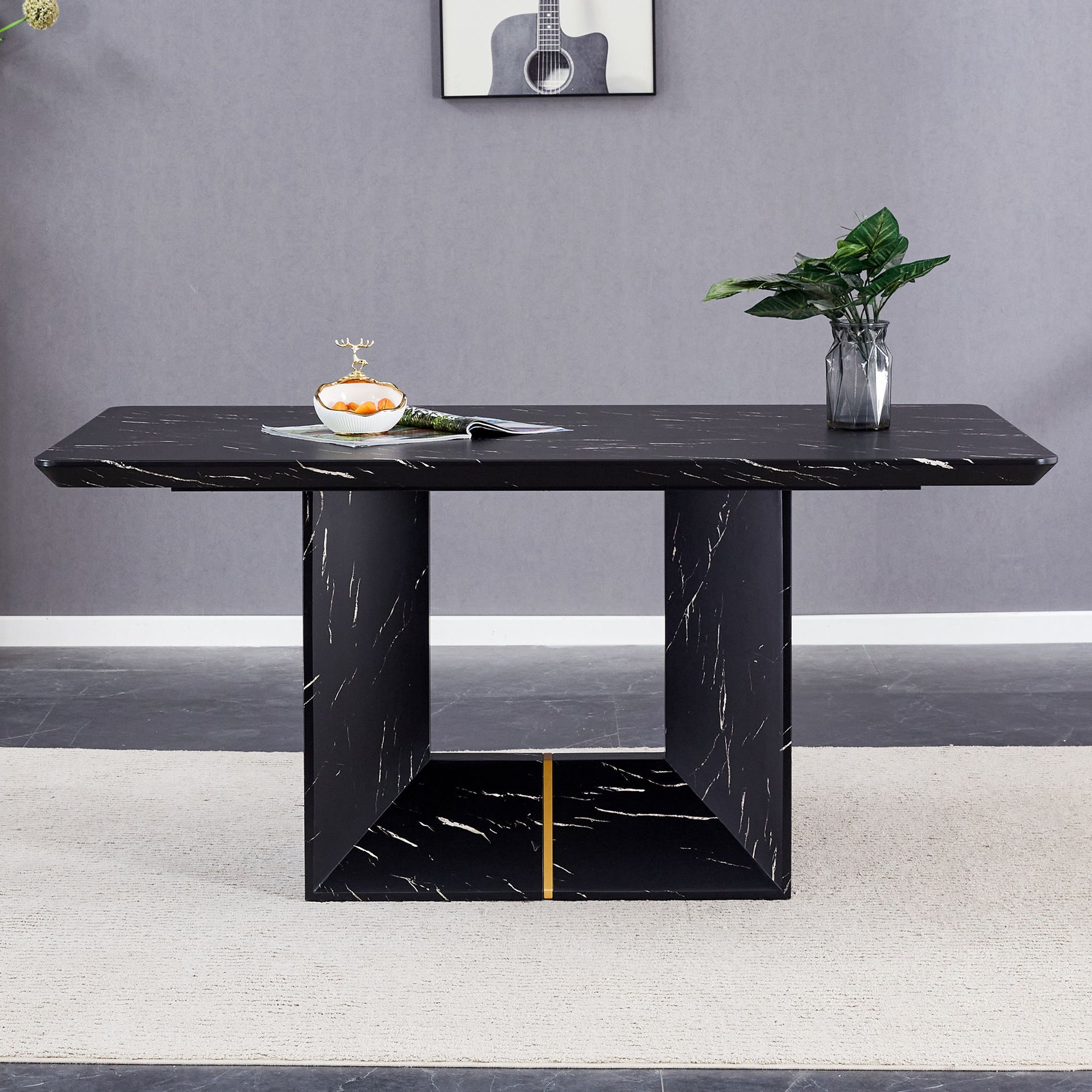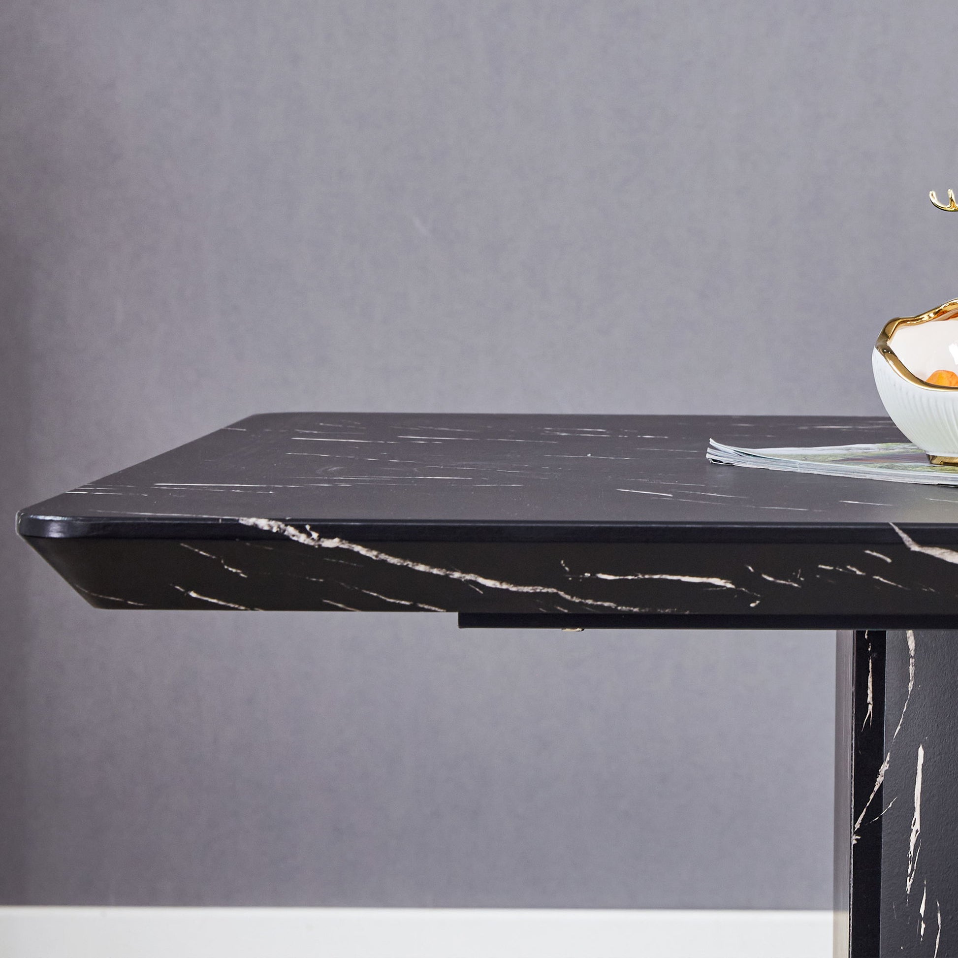 Modern Dining Table With Marbled Design For Luxurious Elegance - Black