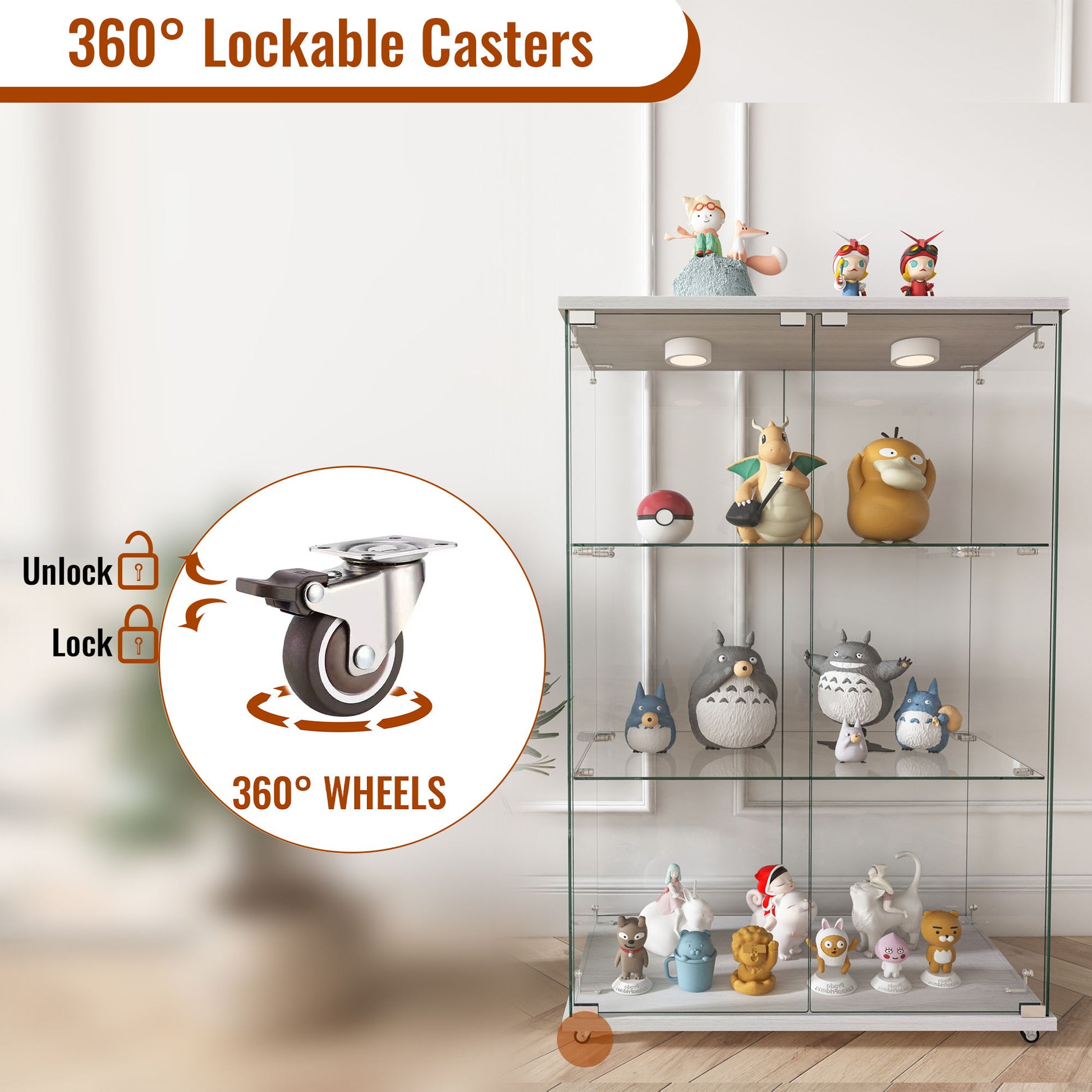- Dust-Proof Glass Doors: Transparent sliding glass doors keep dust out while offering easy access and optimal visibility for displayed items