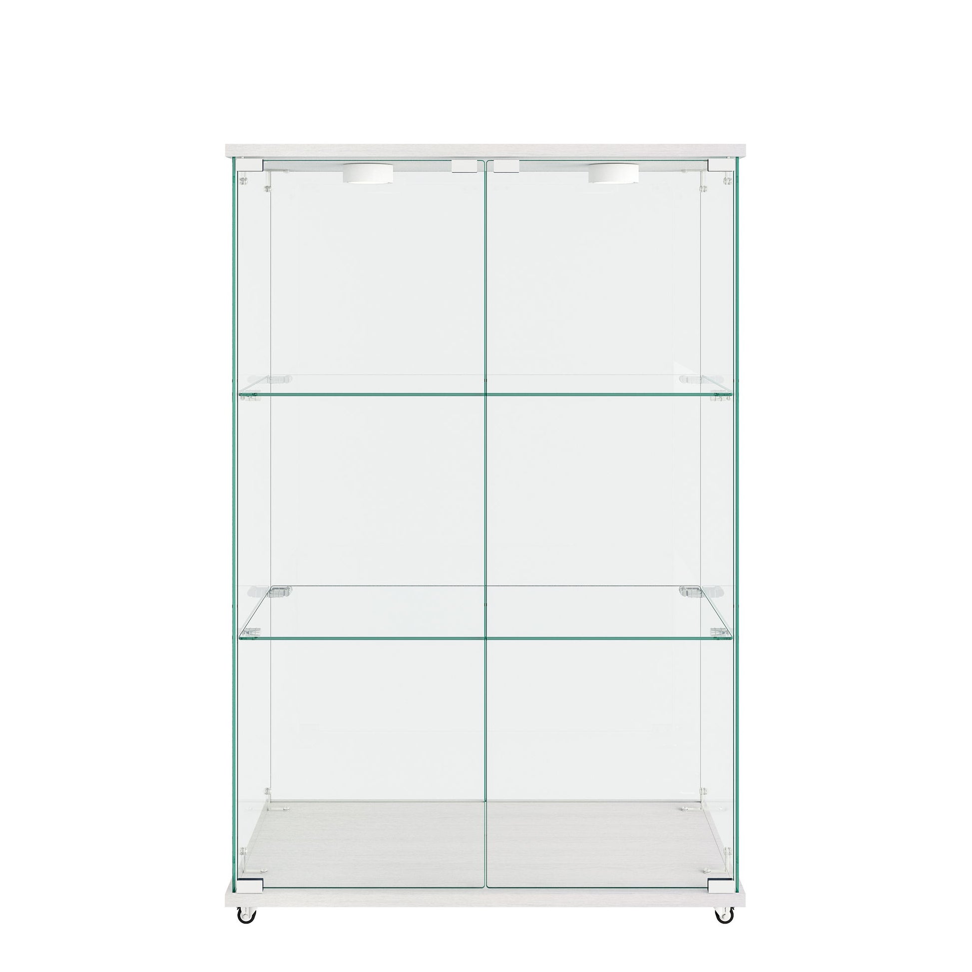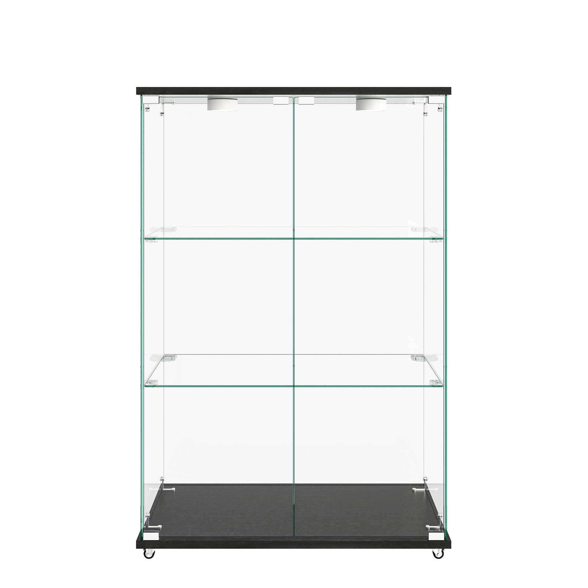 Modern Display Cabinet With LED Lights, Transparent Tempered Glass 2 Door Storage Case With 3 Shelves
