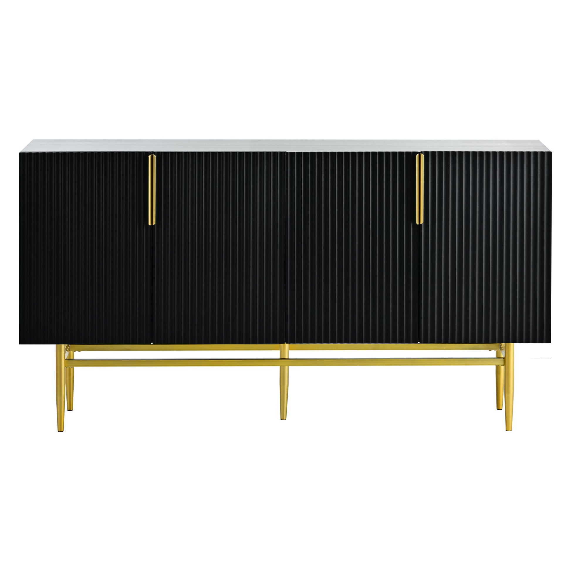 Modern Elegant 4 Door Sideboard Gold Metal Handle Buffet Cabinet For Dining Room, Living Room, Bedroom, Hallway - Black