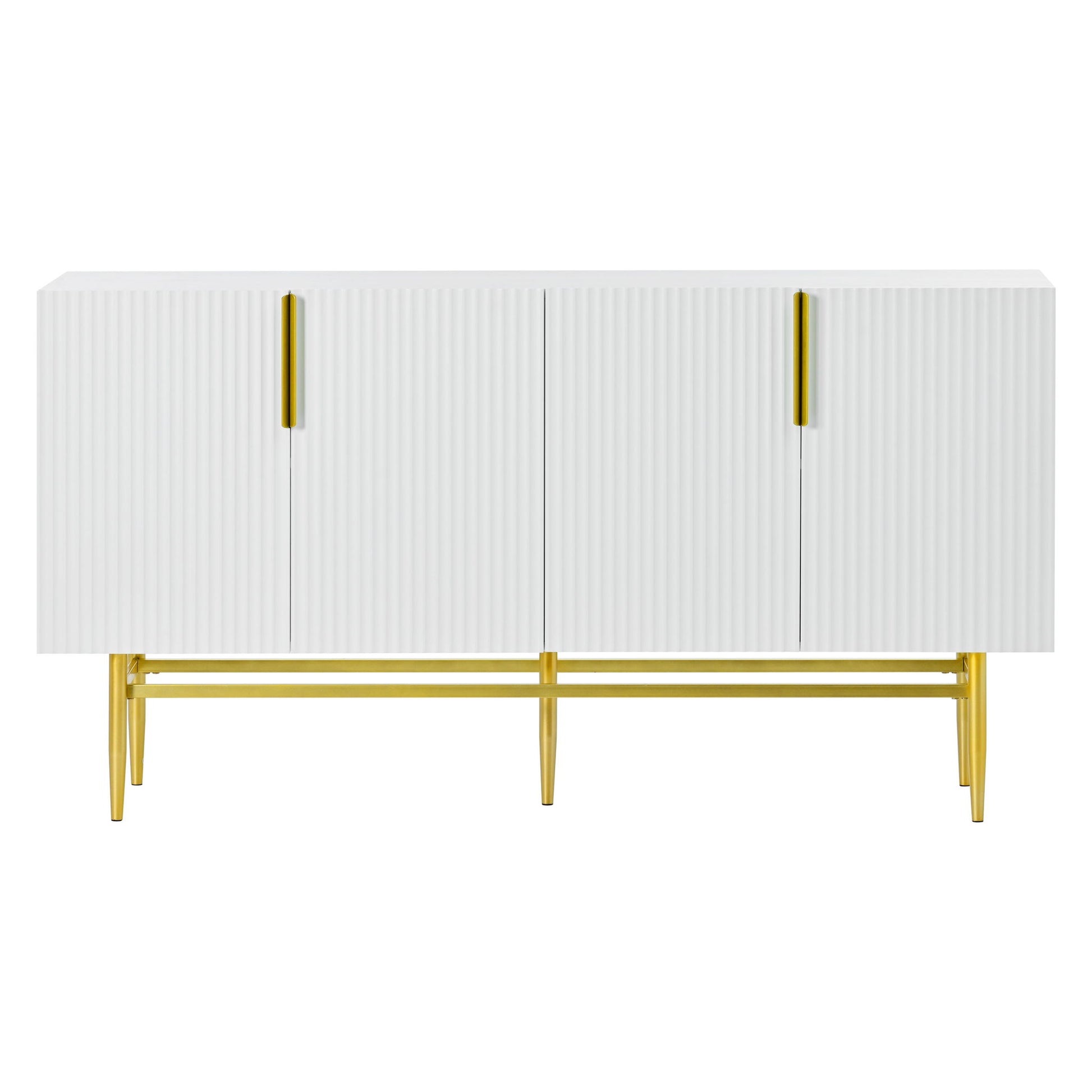 Modern Elegant 4 Door Sideboard Gold Metal Handle Buffet Cabinet For Dining Room, Living Room, Bedroom, Hallway - White