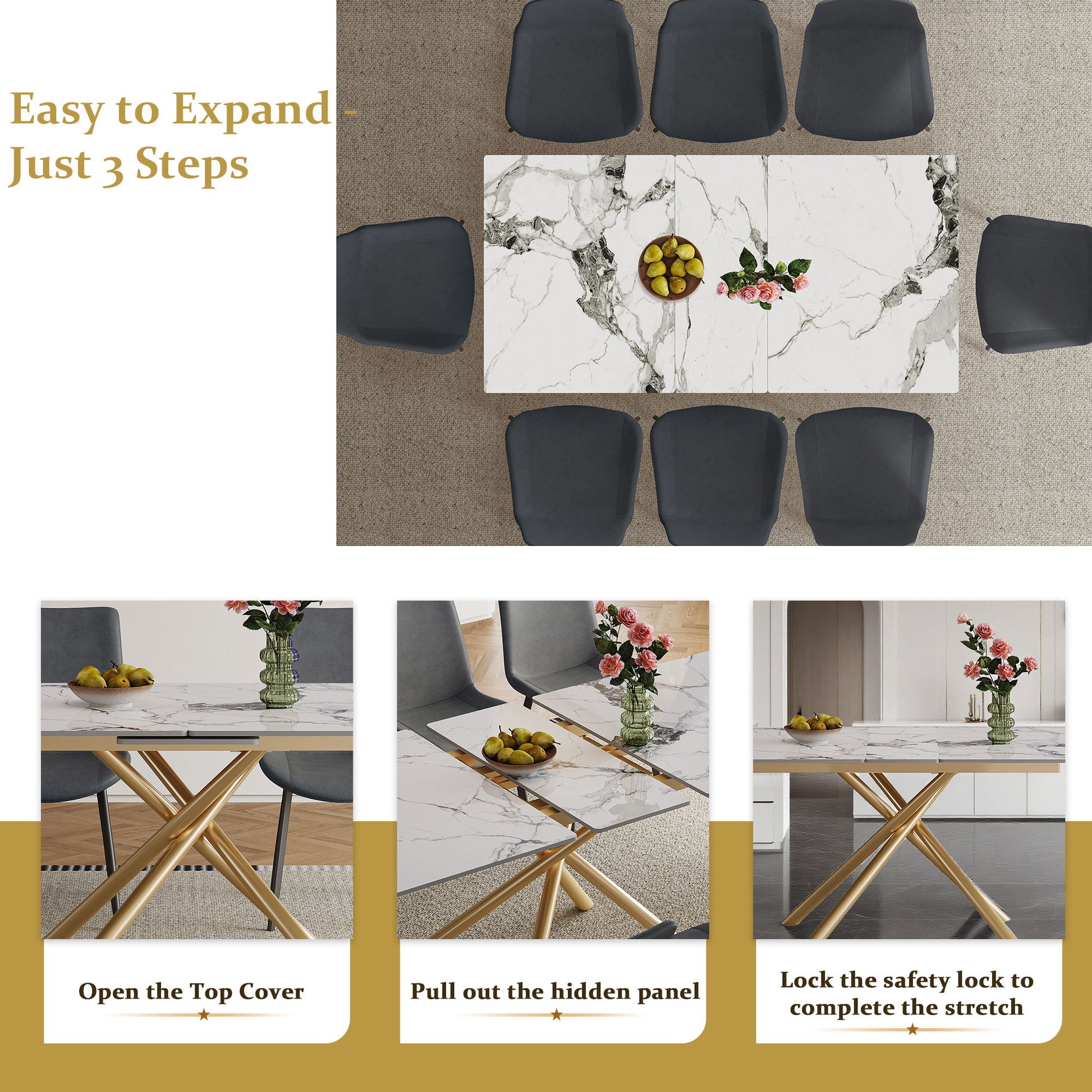 - Smooth & Quiet Extension: Equipped with a whisper-quiet glide system for seamless expansion and retraction.