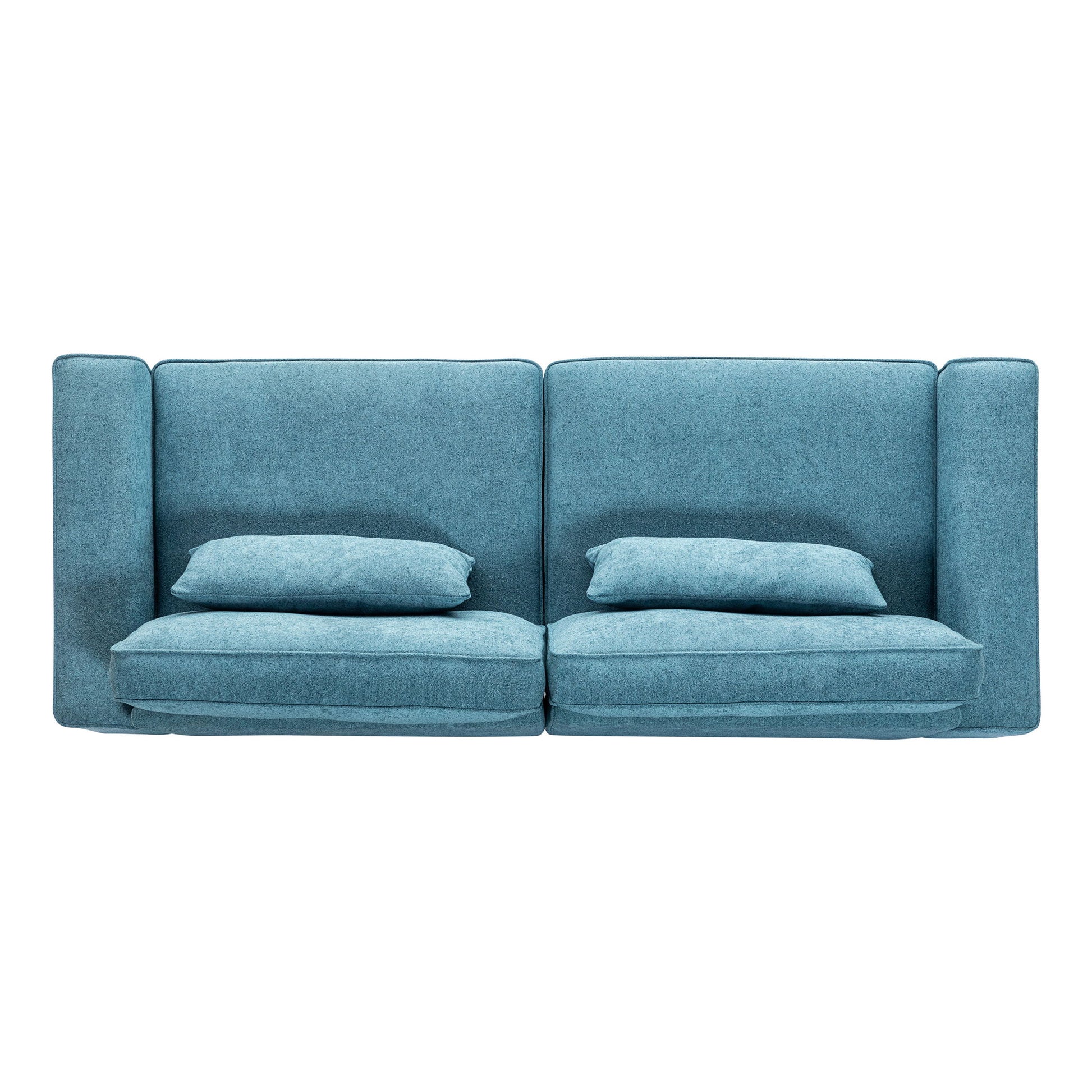 Modern Fabric Sofa With Plush Cushions, Sleek Arm Design, Sturdy Solid Wood Frame - Blue