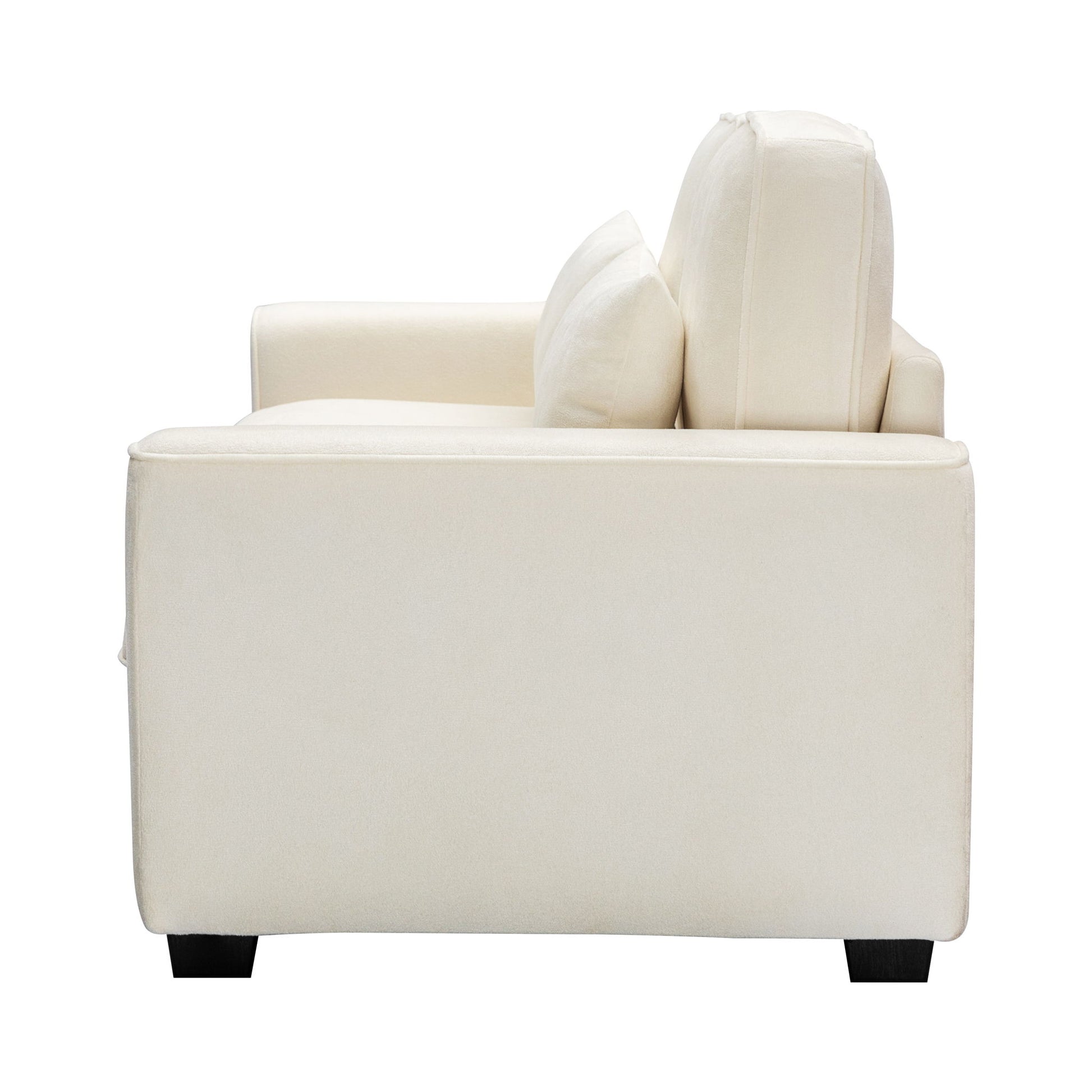 Modern Fabric Sofa With Plush Cushions, Sleek Arm Design, Solid Wood Frame - Beige