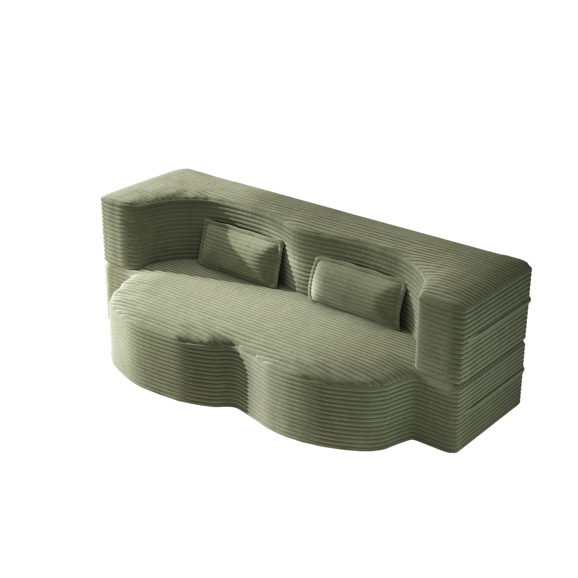 Floor Sofa With 2 Pillows, Twin Size Folding Mattress For Living Room - Green