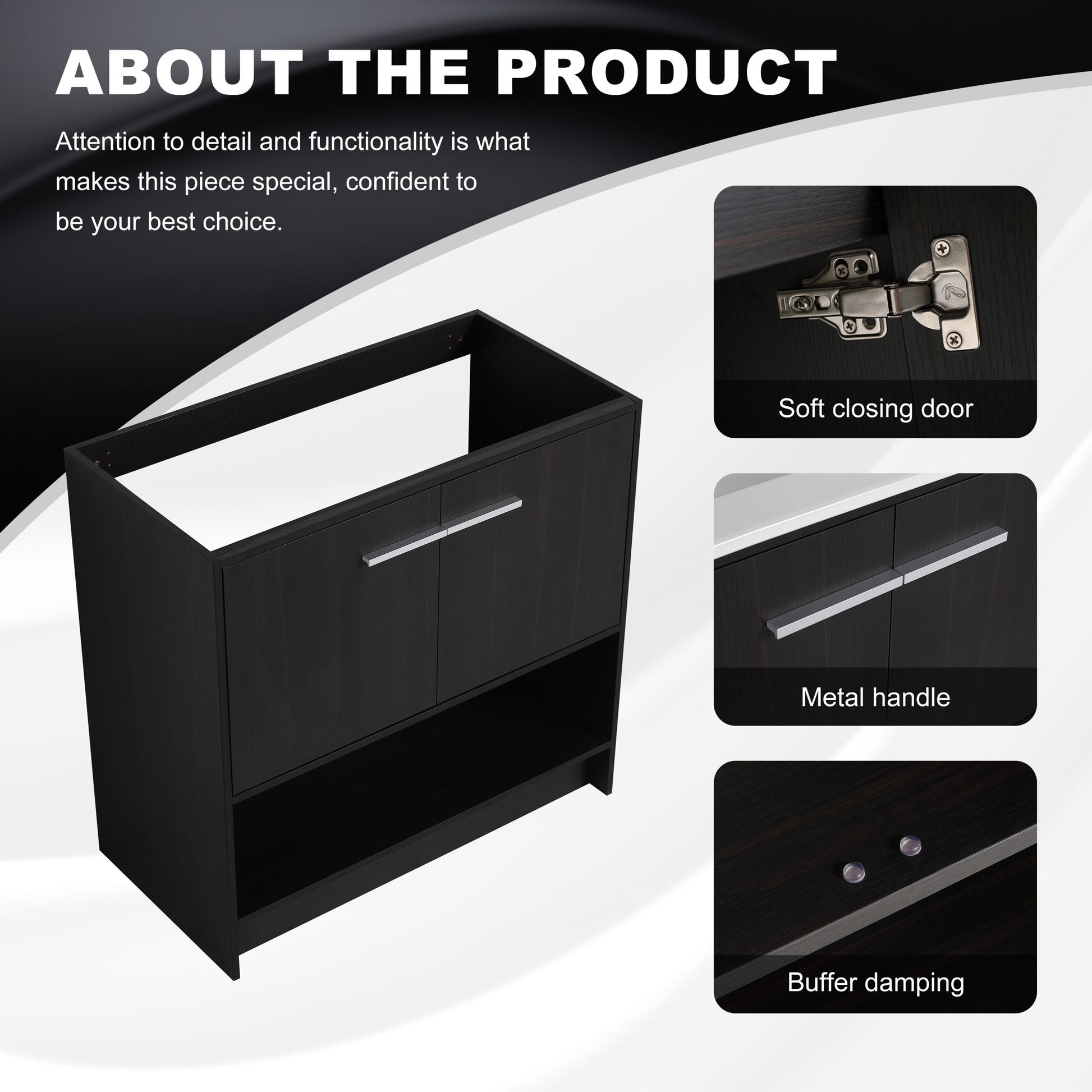 Modern Freestanding Bathroom Vanity With 2 Doors (Excluding Sink) - Black Oak