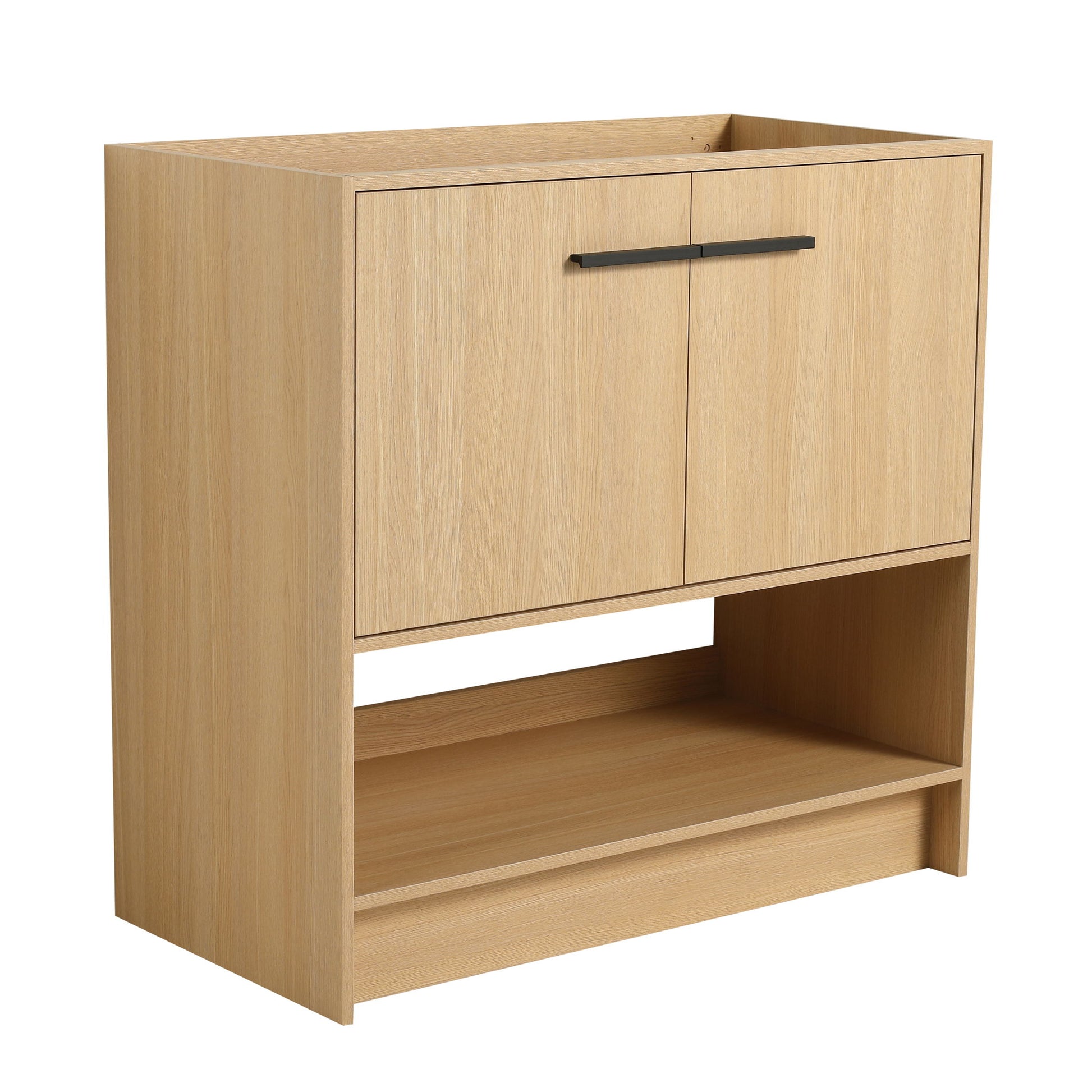 Modern Freestanding Bathroom Vanity With 2 Doors Storage, Excluding Sink - Oak