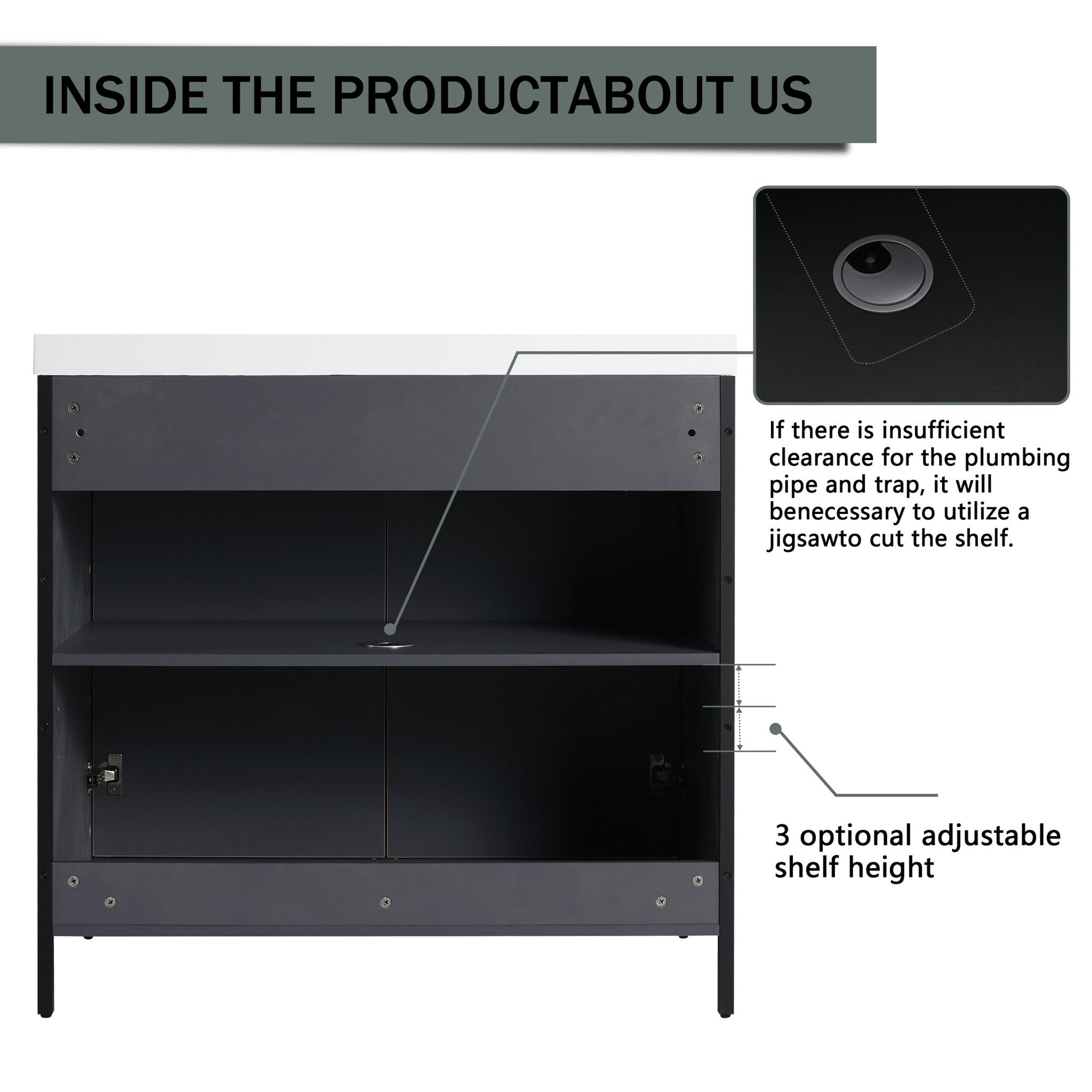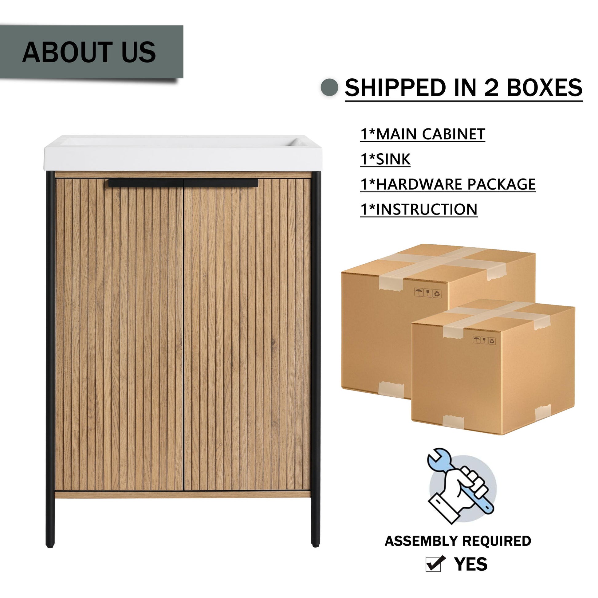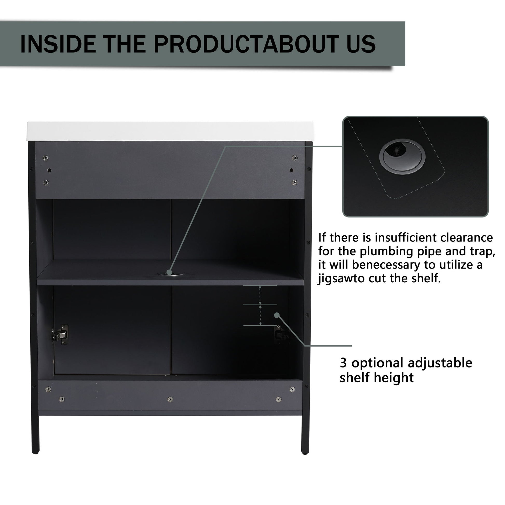Modern Freestanding Bathroom Vanity With Resin Sink & Soft Close Cabinet Doors