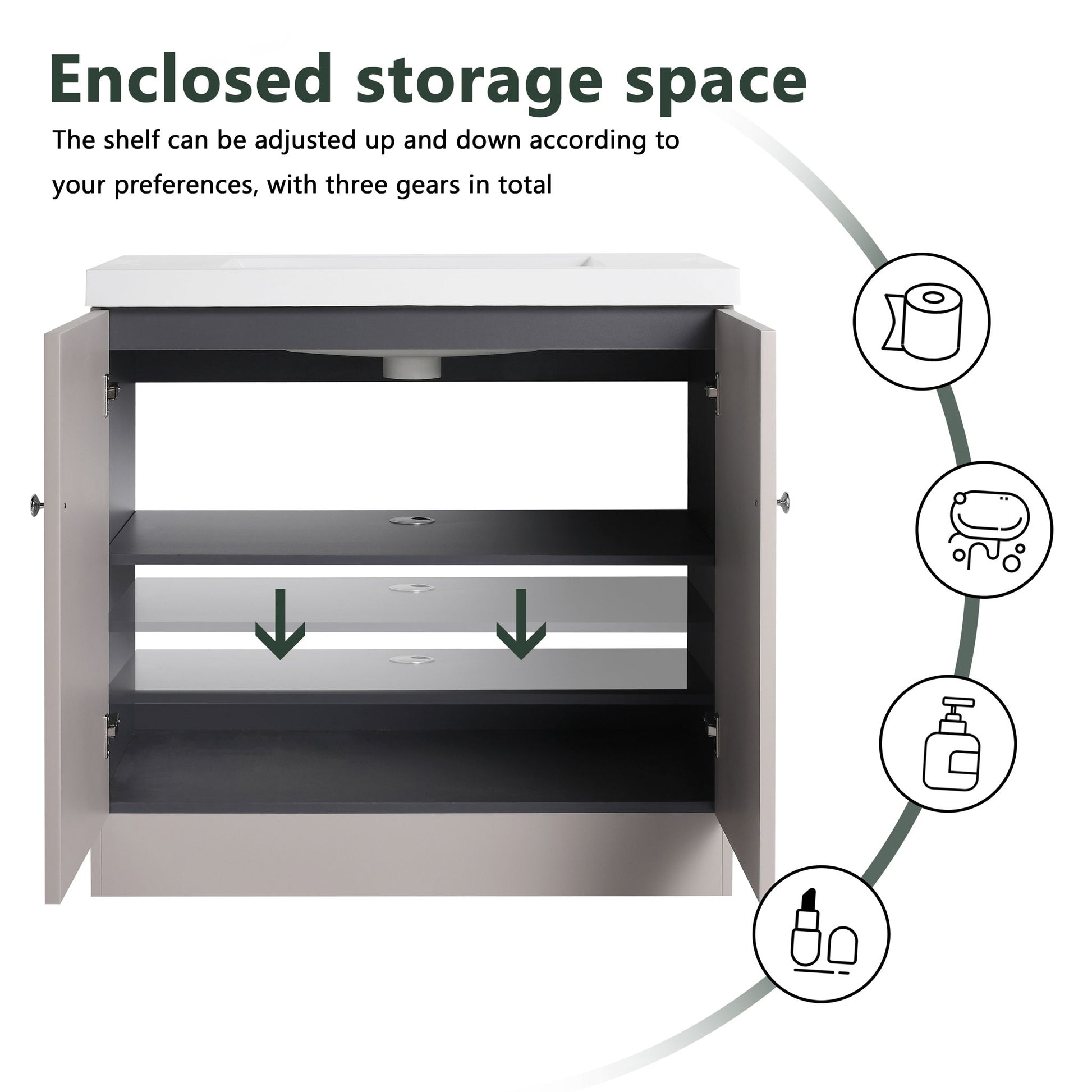 Modern 30" Freestanding Bathroom Vanity With Soft Close Cabinet Doors, Excluding Sink - Khaki