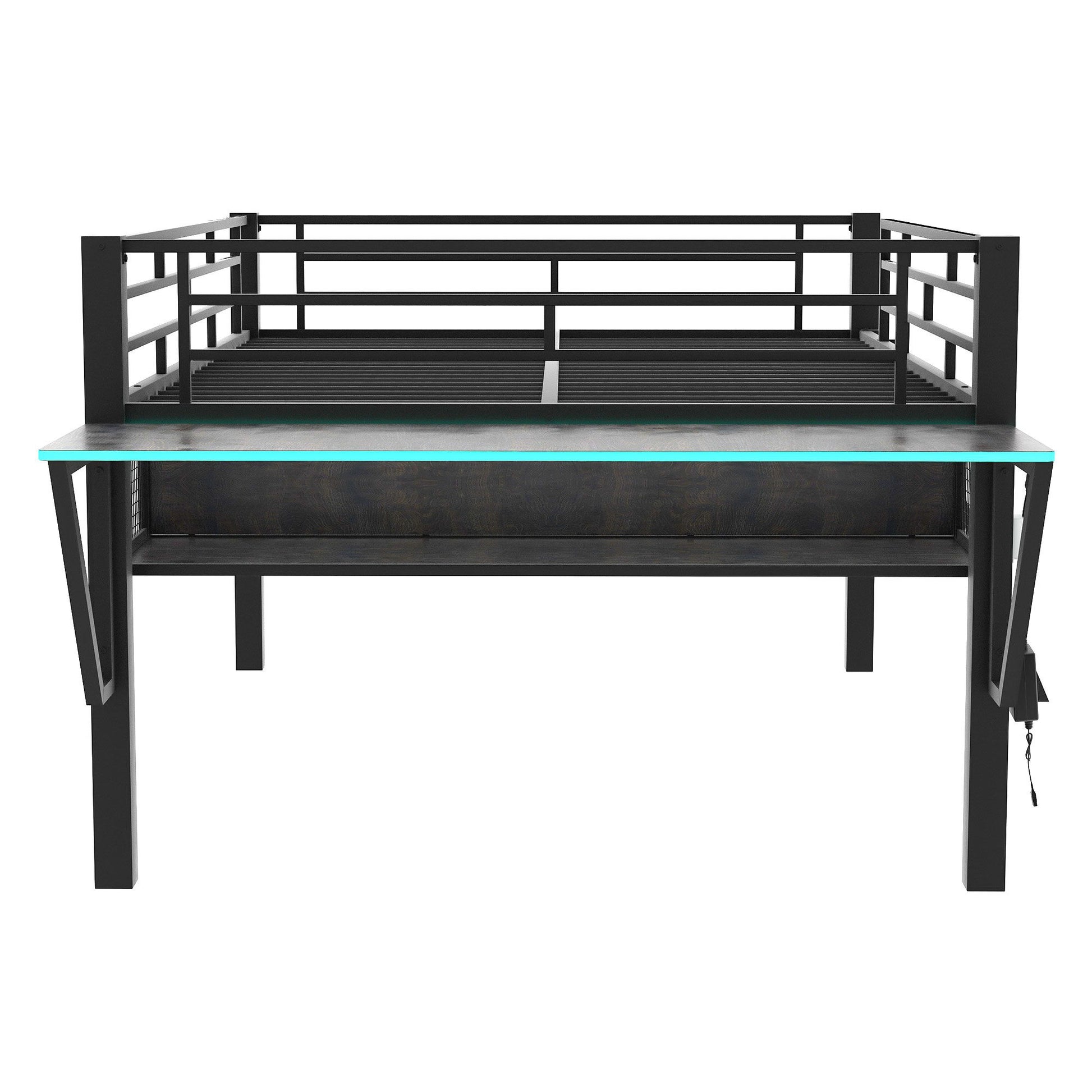 Twin, Esports Inspired Gaming Mid Loft Bed With Desk And LED - Black