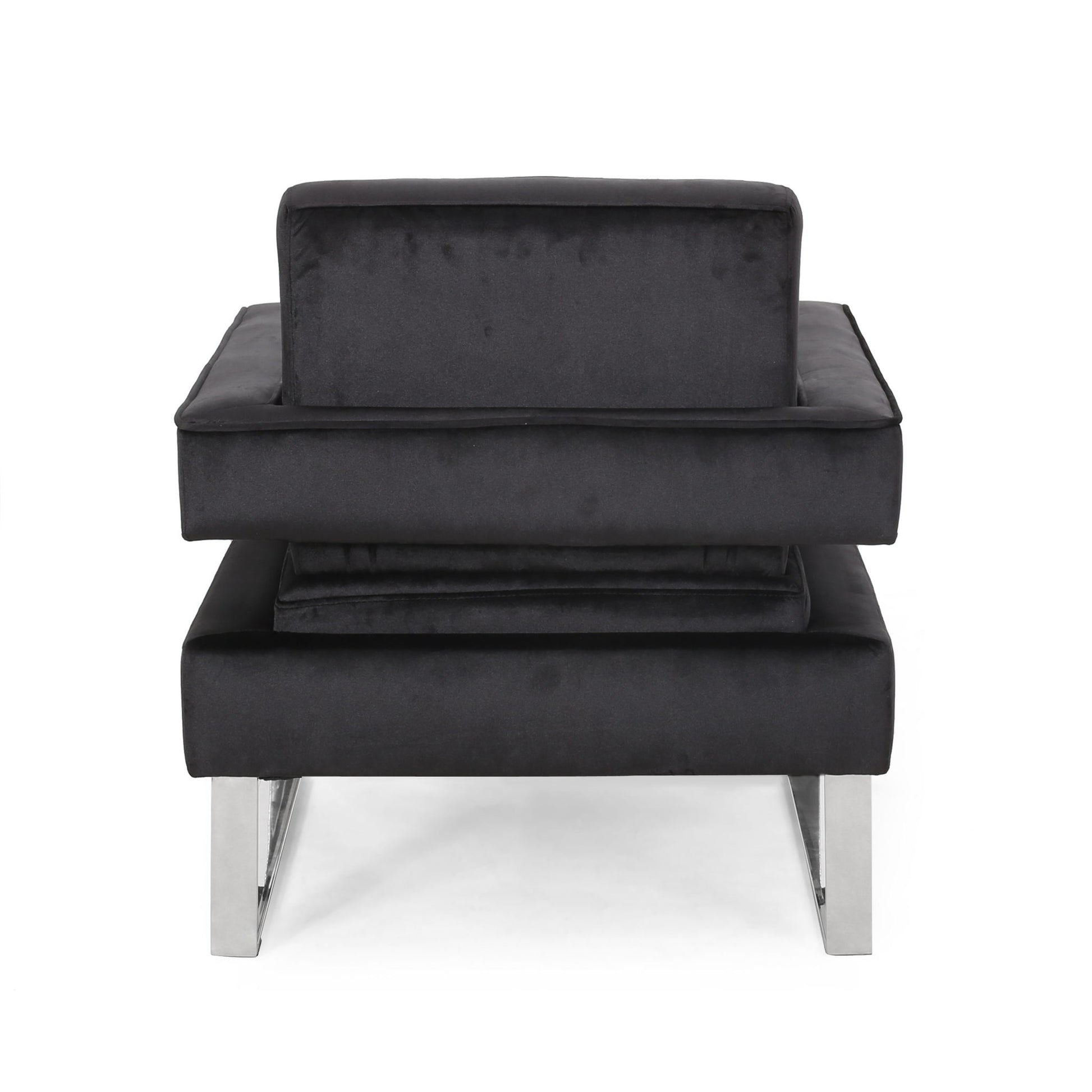 Modern Glam Club Arm Chair With Velvet Upholstery And Stainless Steel Legs - Black