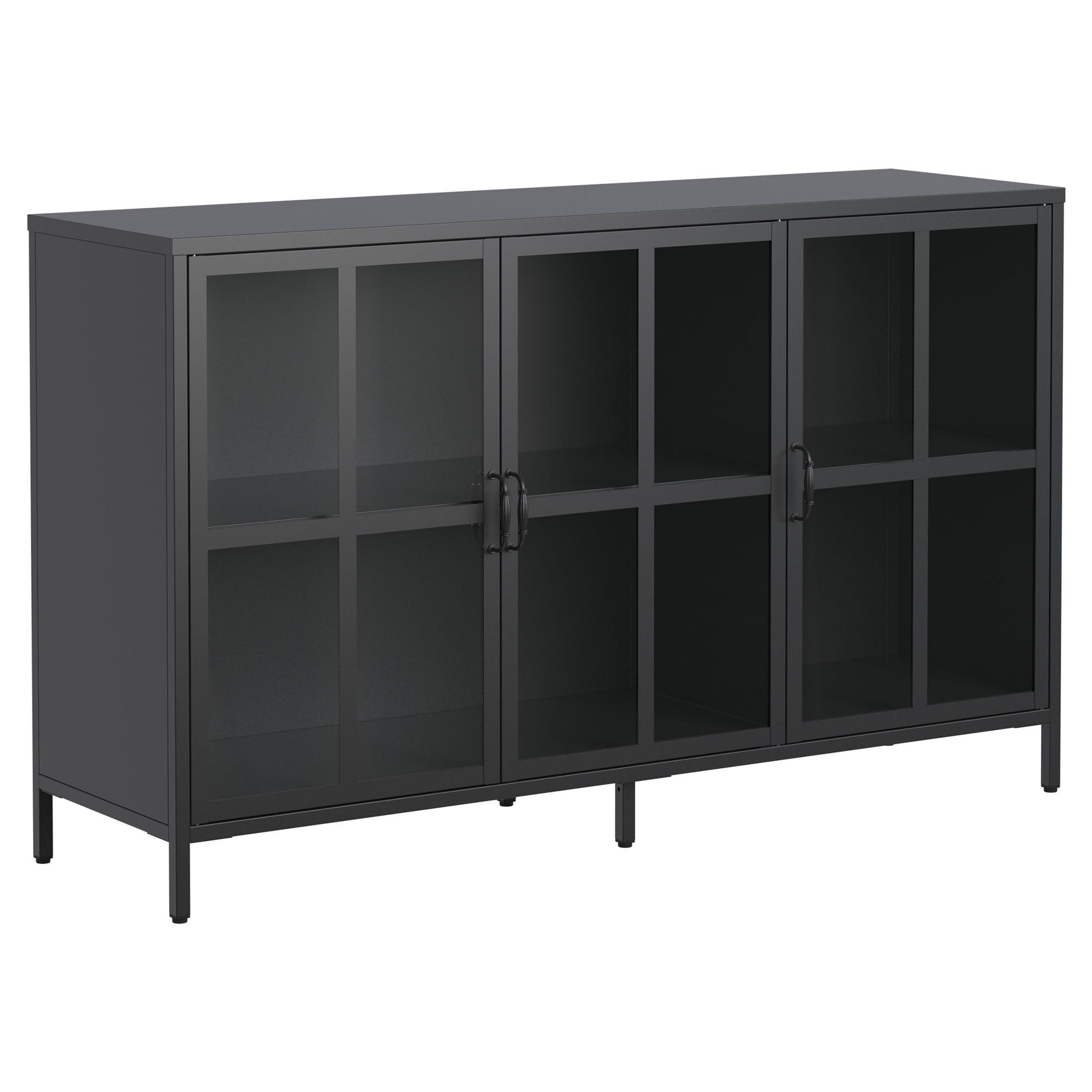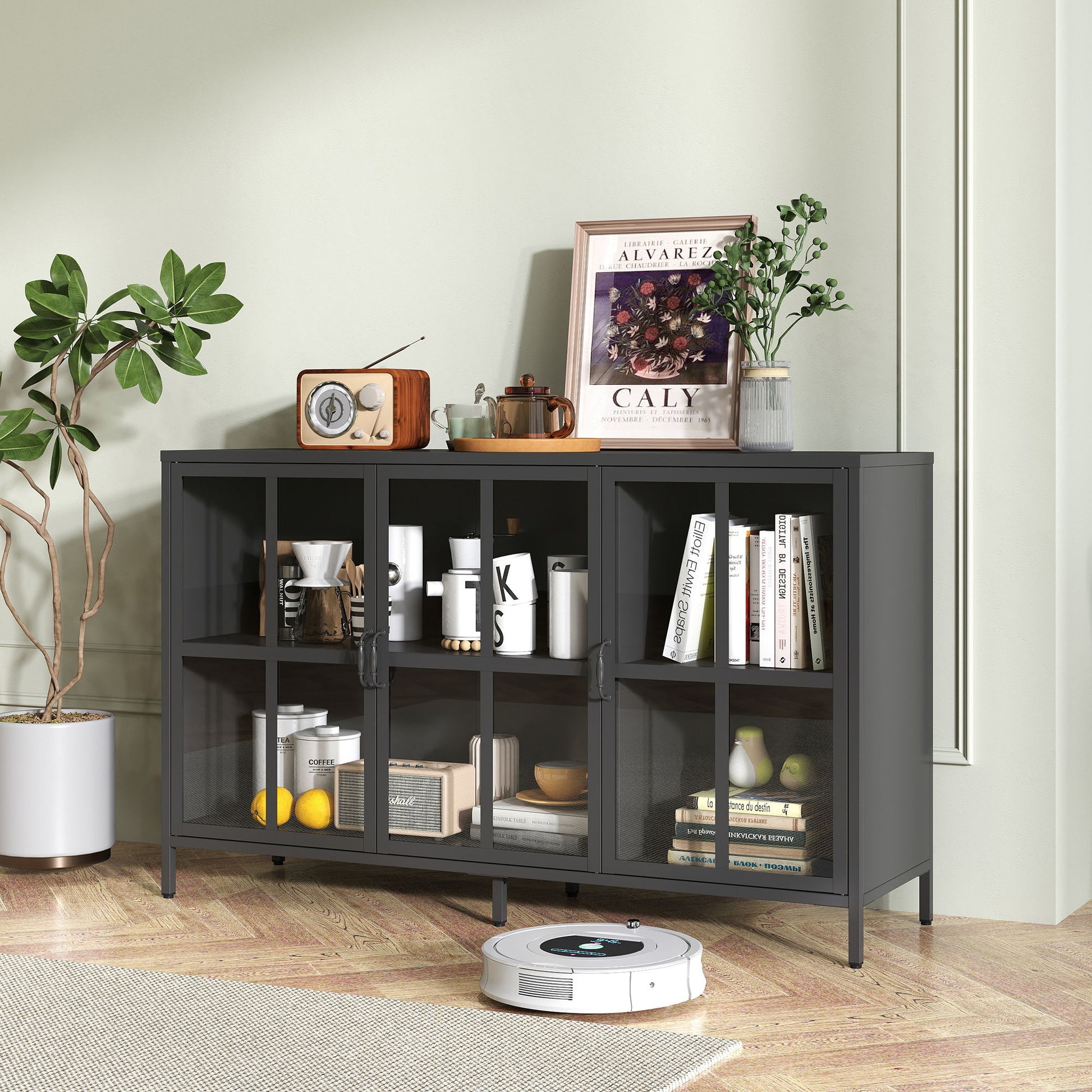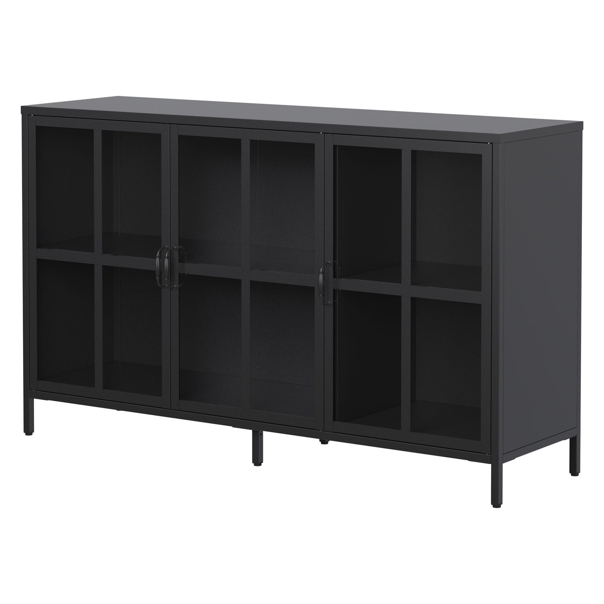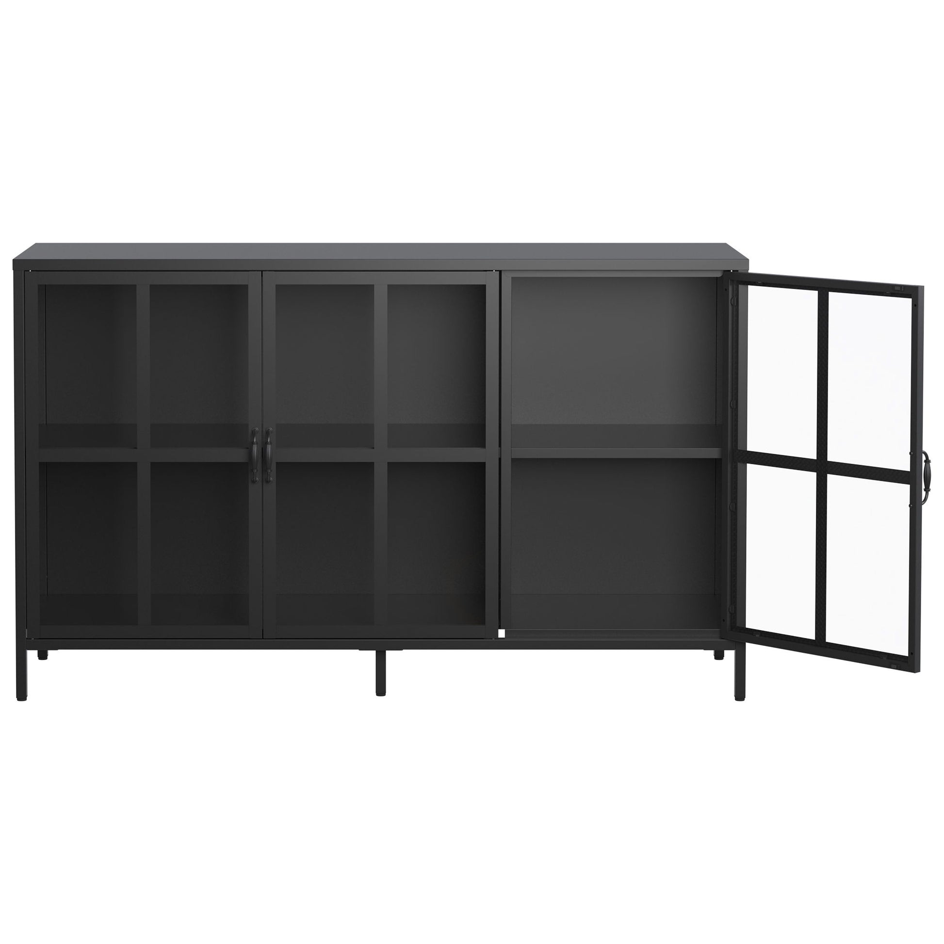 Modern Heavy Duty Metal Sideboard Buffet Cabinet With Storage, Adjustable Feet, Glass Doors, Steel - Black