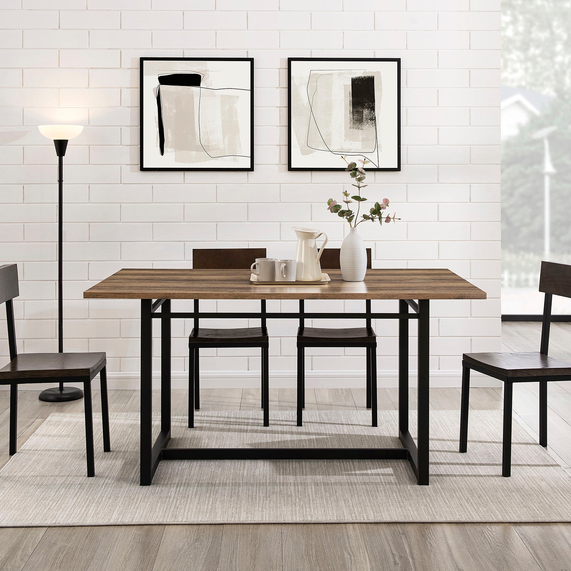 - Modern Aesthetic: Boasting a sleek metal base and a laminate rustic oak woodgrain finish, this table combines urban chic with rustic charm, adding style to any dining area.