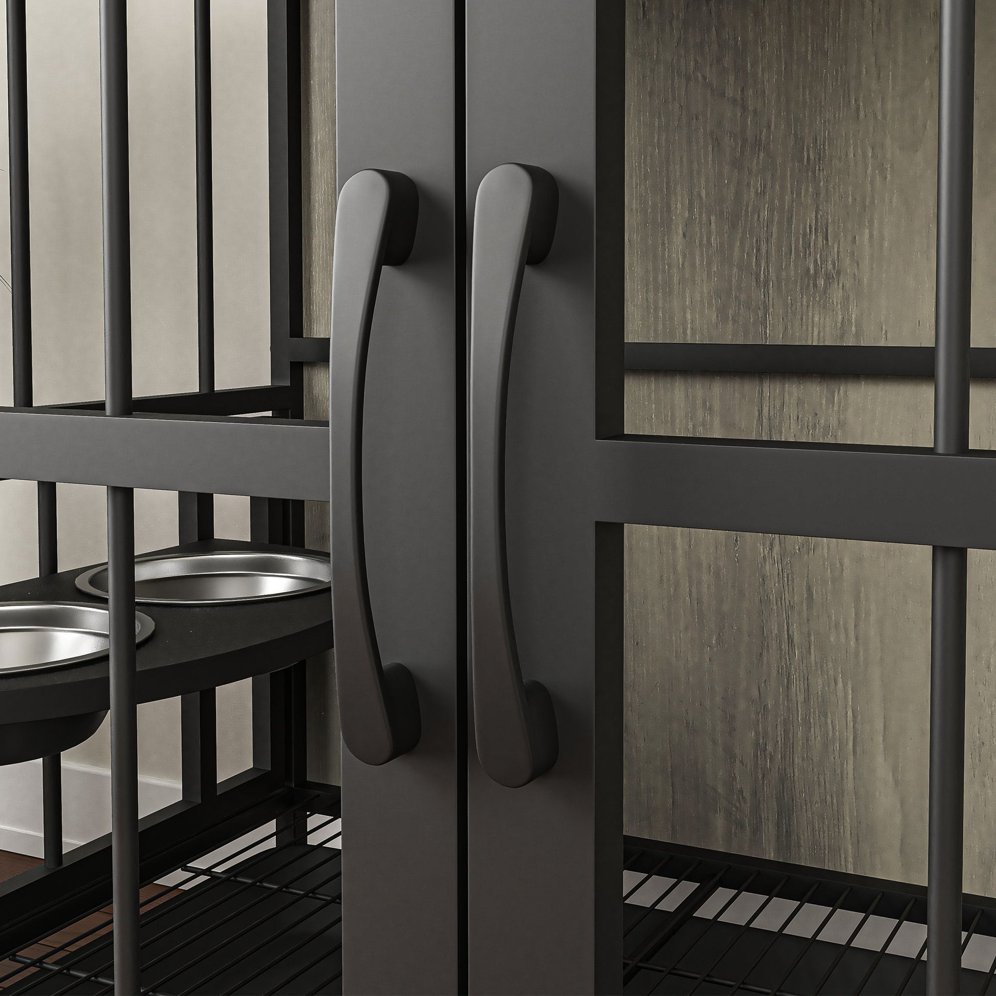 Modern Kennel Dogs Room Up To 60 Lb, Dog Crate Furniture With Multi-Purpose Rremovable Ttray, Double-Door Dog House, Lift Panel, 360 Degree Rotation, 3 Height Adjustable Feeding Bowls
