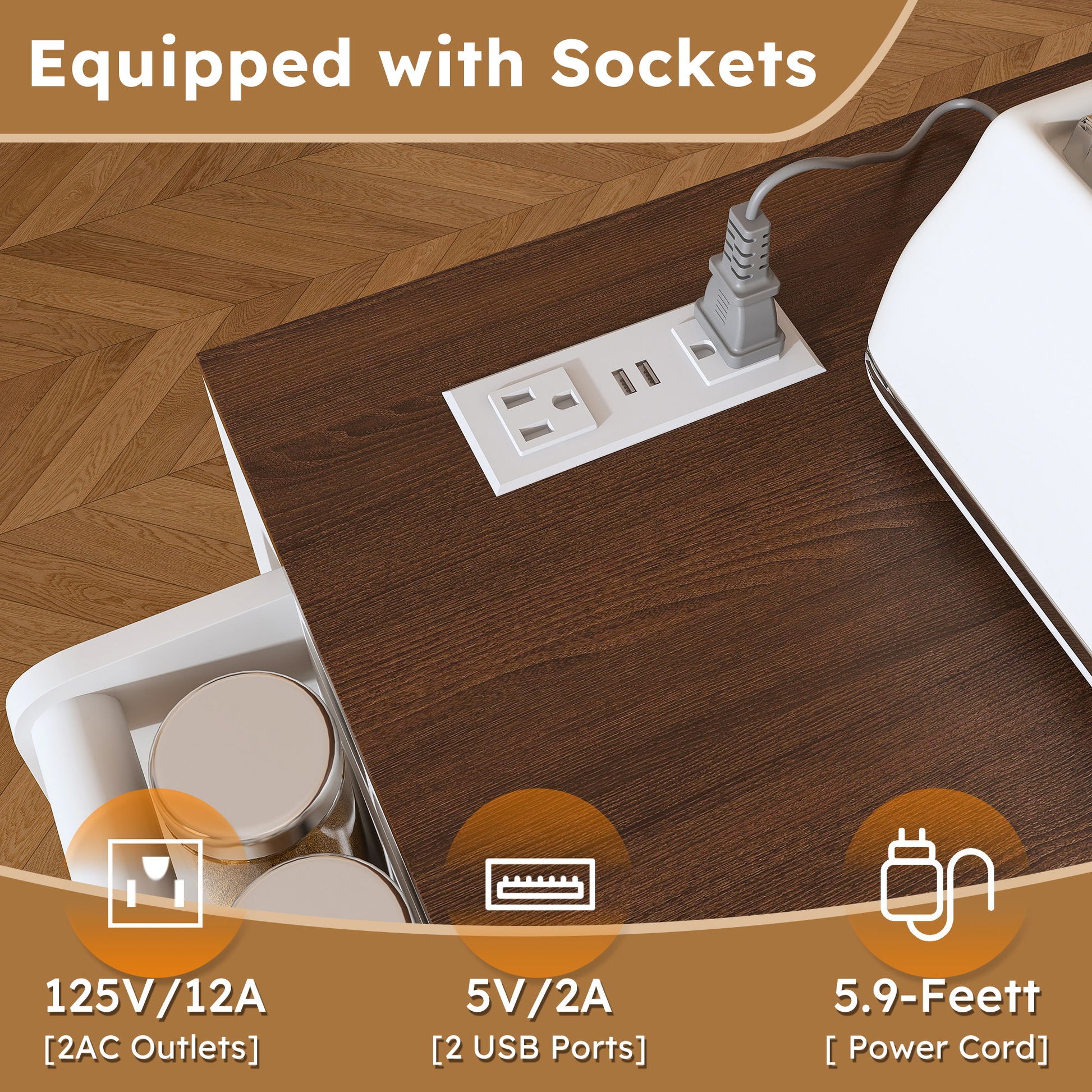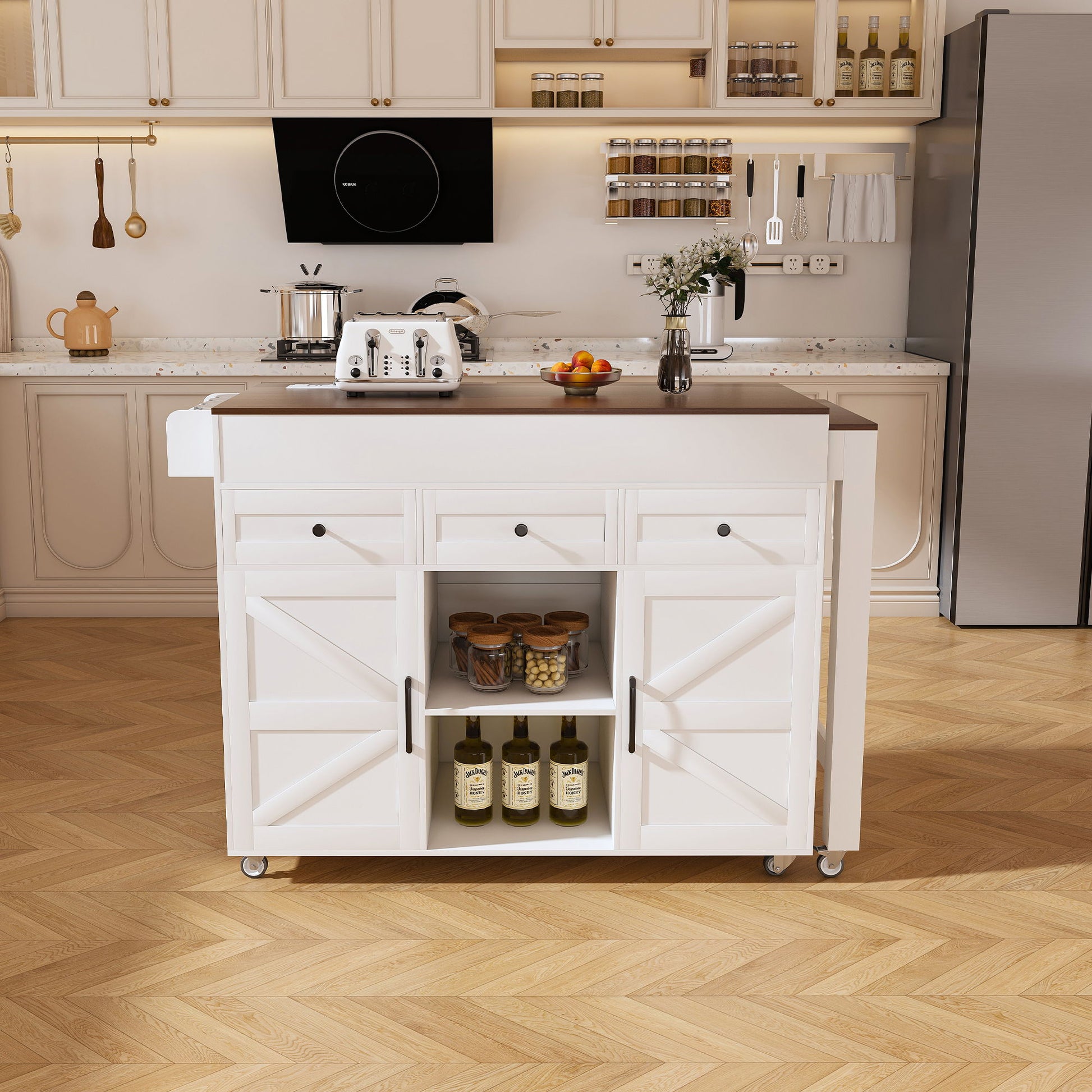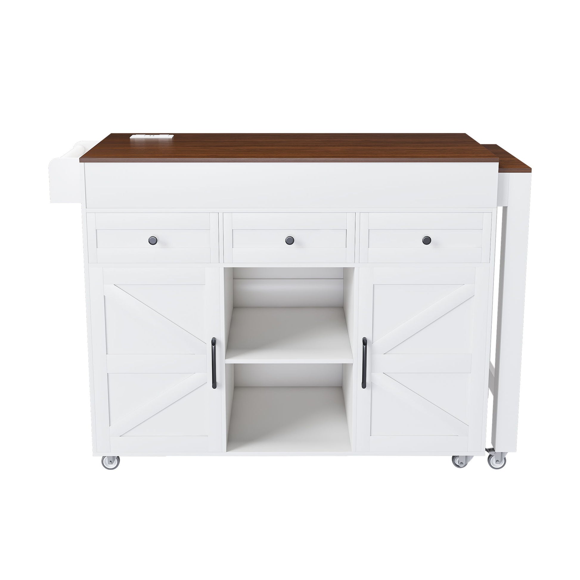 Modern Kitchen Island With Extendable Dining Table & Power Outlet - White