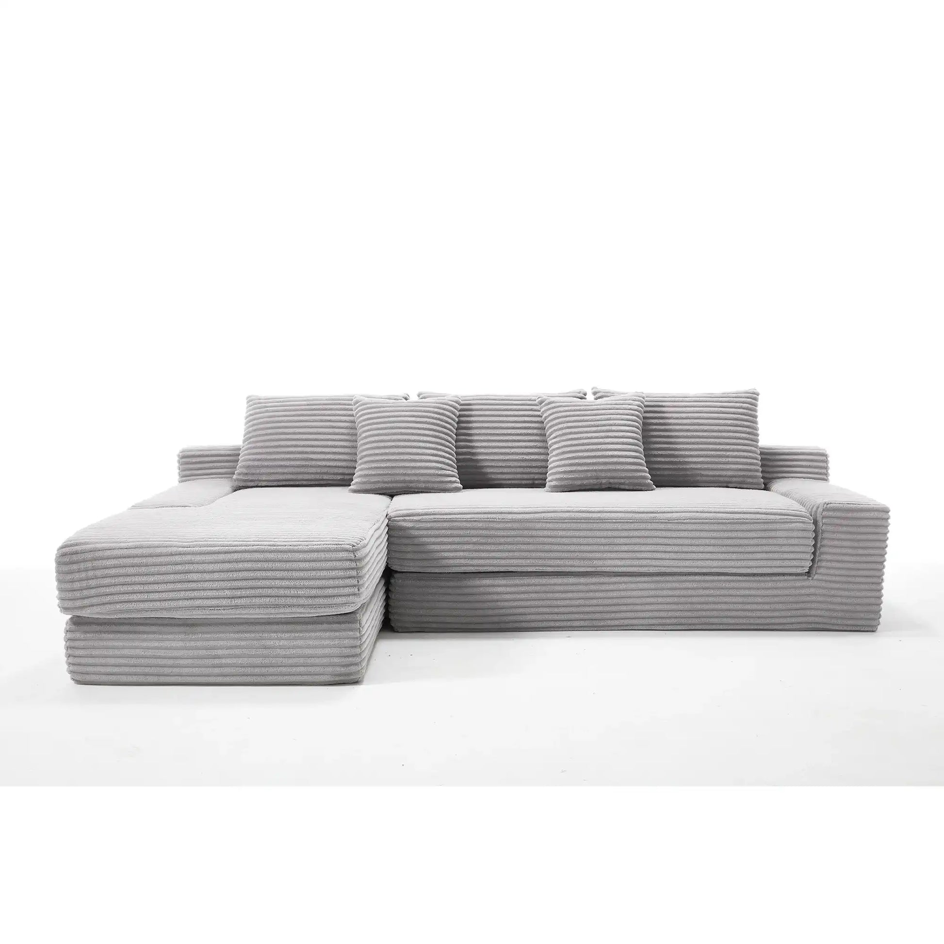 Modern L-Shaped Sectional Sofa with Memory Foam & Steel Frame, Corduroy Fabric, Light Gray