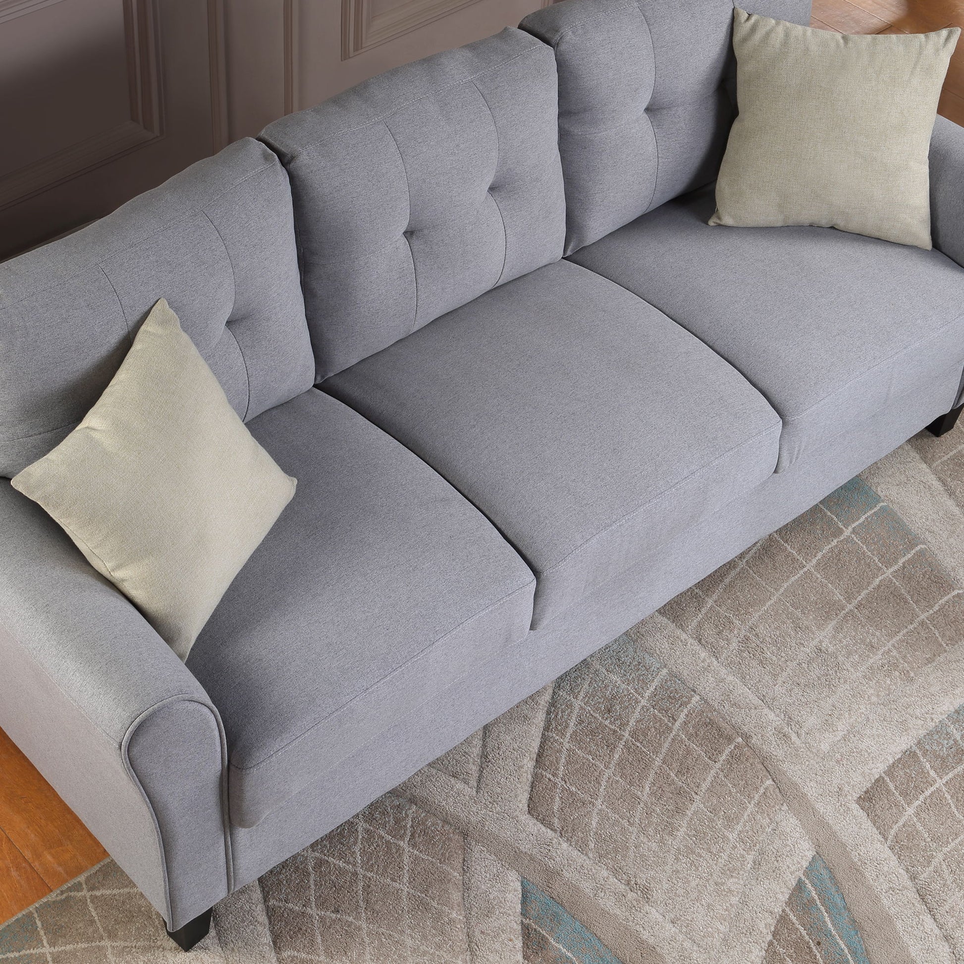 Modern Living Room Sofa Linen Upholstered Couch Furniture For Home Or Office