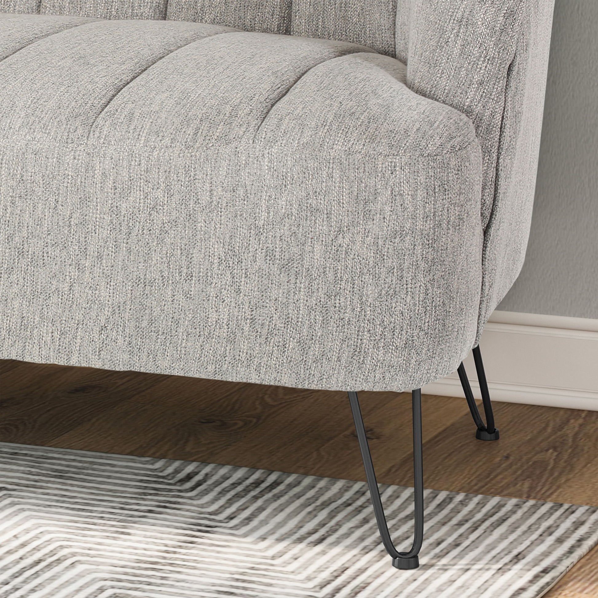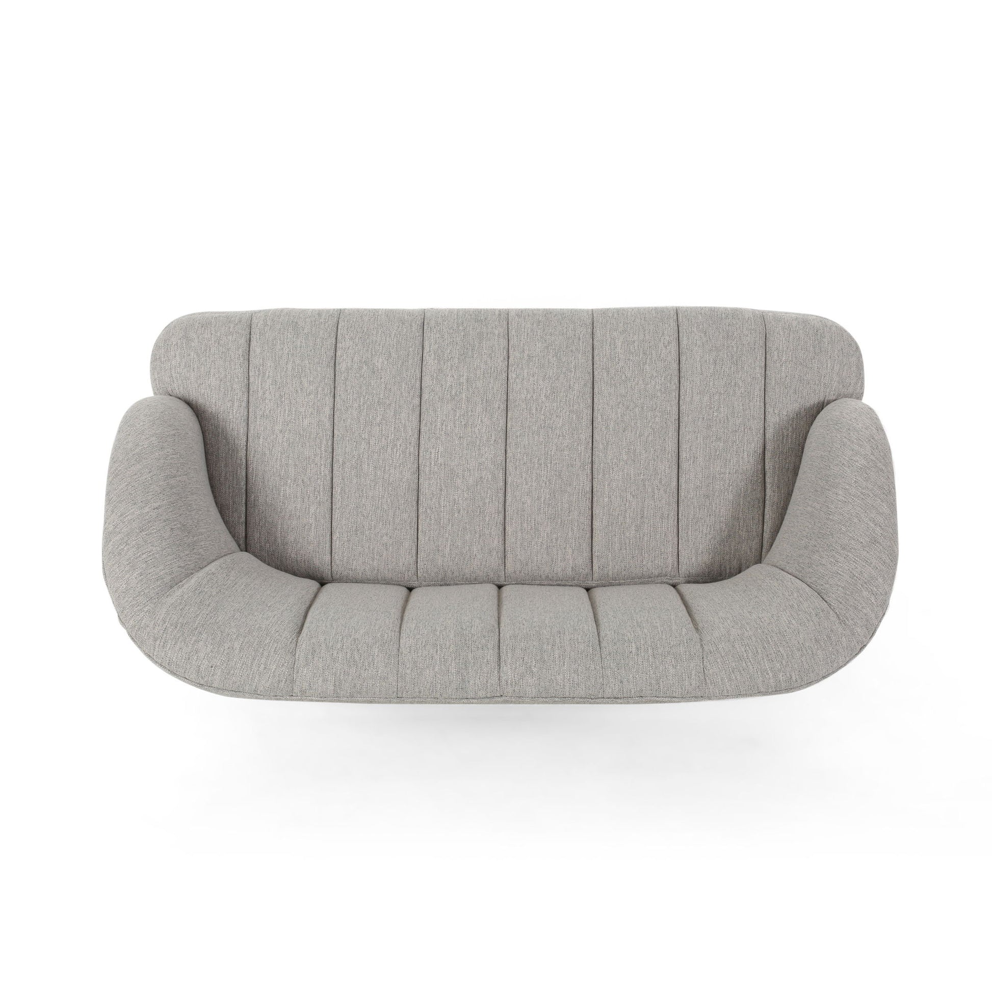 Modern Loveseat With Channel Stitching And Iron Legs - Light Gray