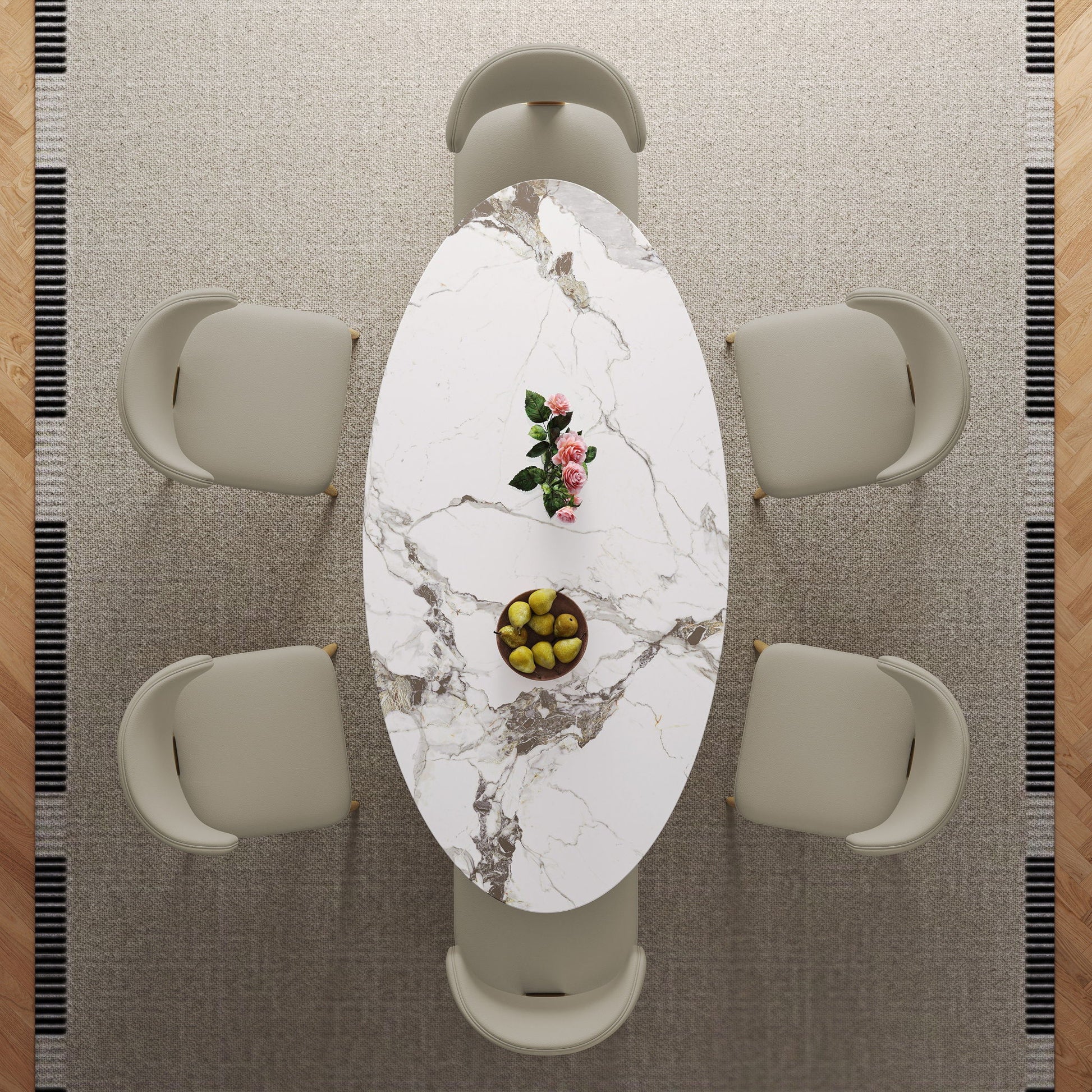 Modern Luxury Marble Dining Table Set Oval Kitchen Table With Stainless Steel Base - Gold / White Print