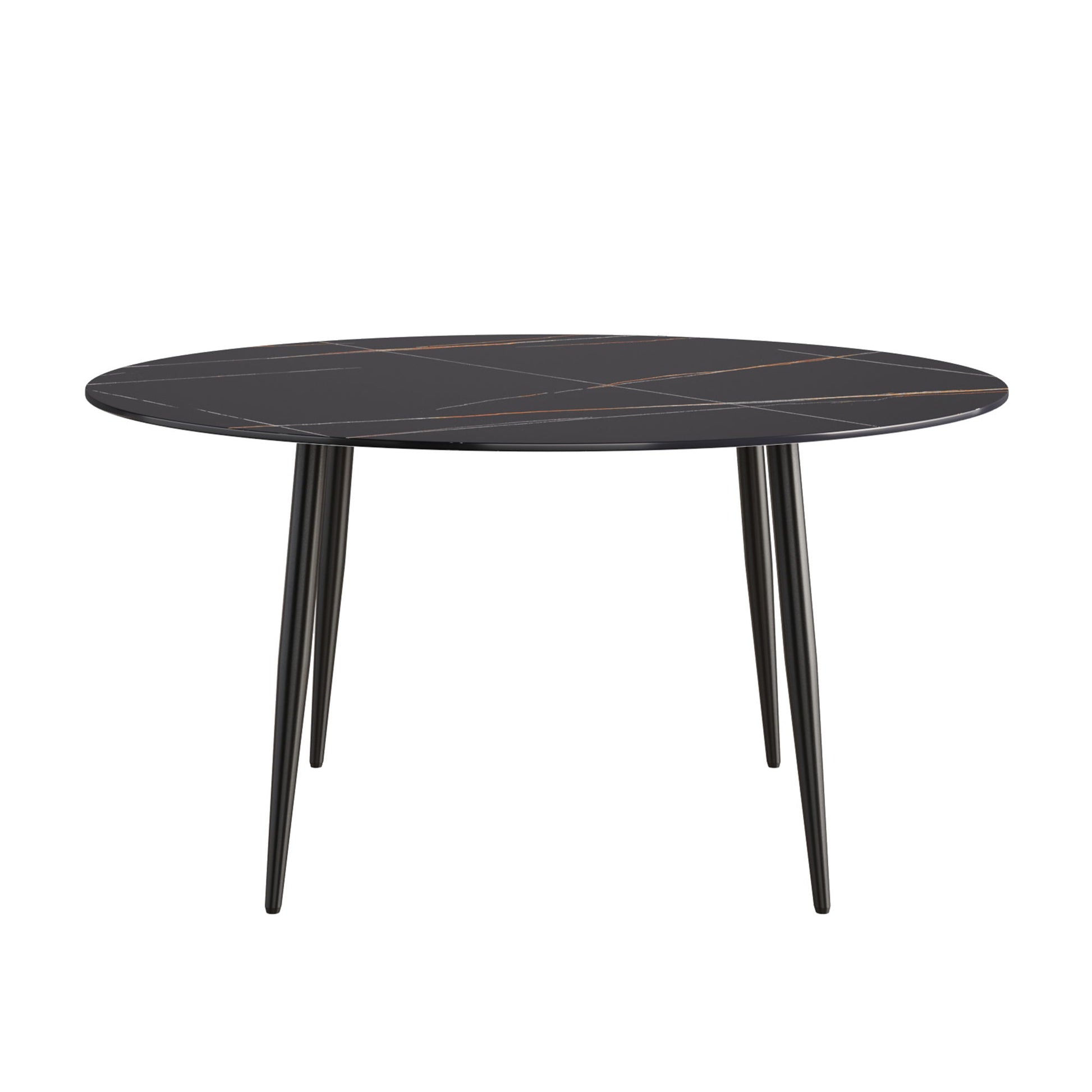 Modern Man-Made Stone Round Metal Dining Table-Position For 6 People - Black