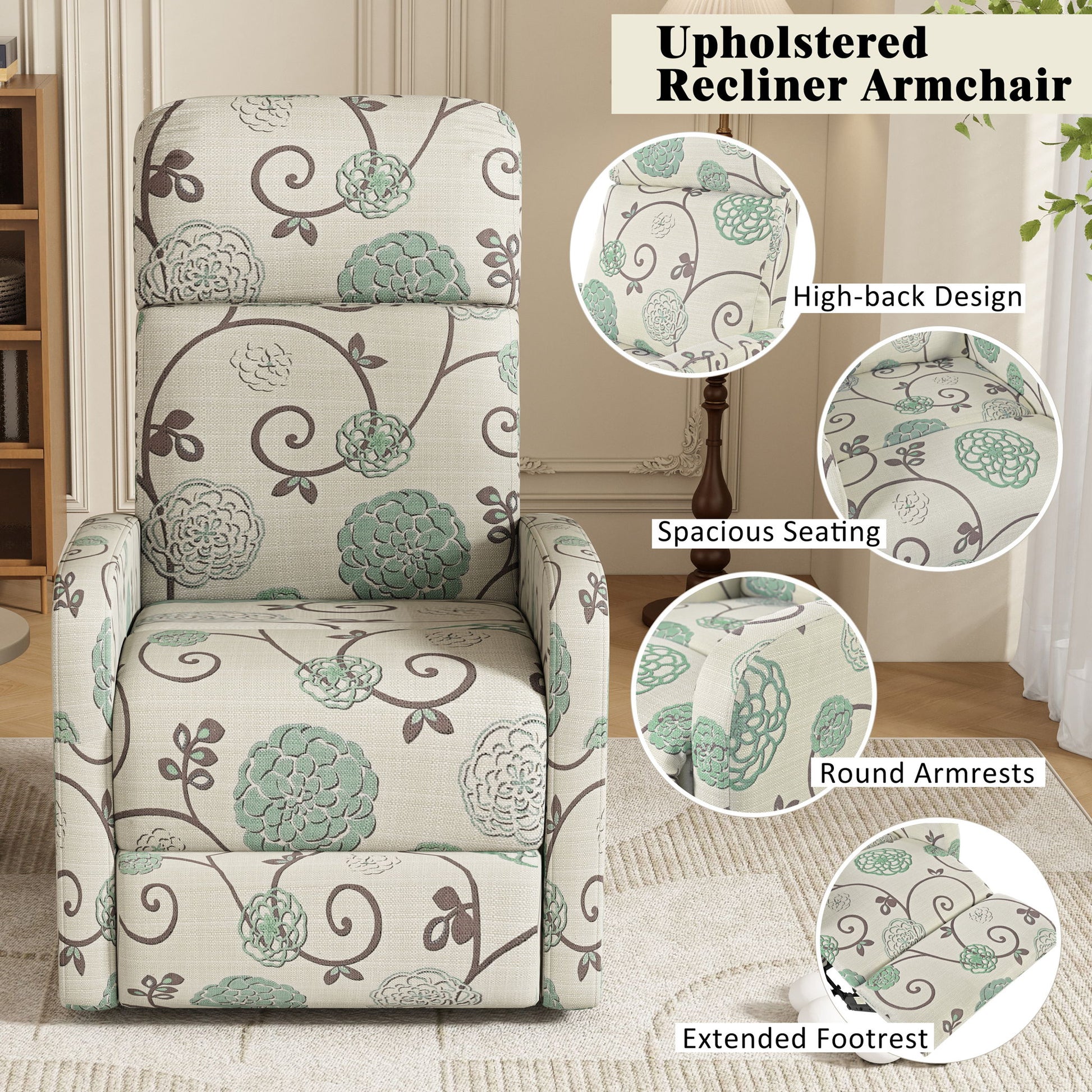 Modern Manual Recliner, Home Theater Chair With Adjustable Backrest For Living Room - Beige / Blue