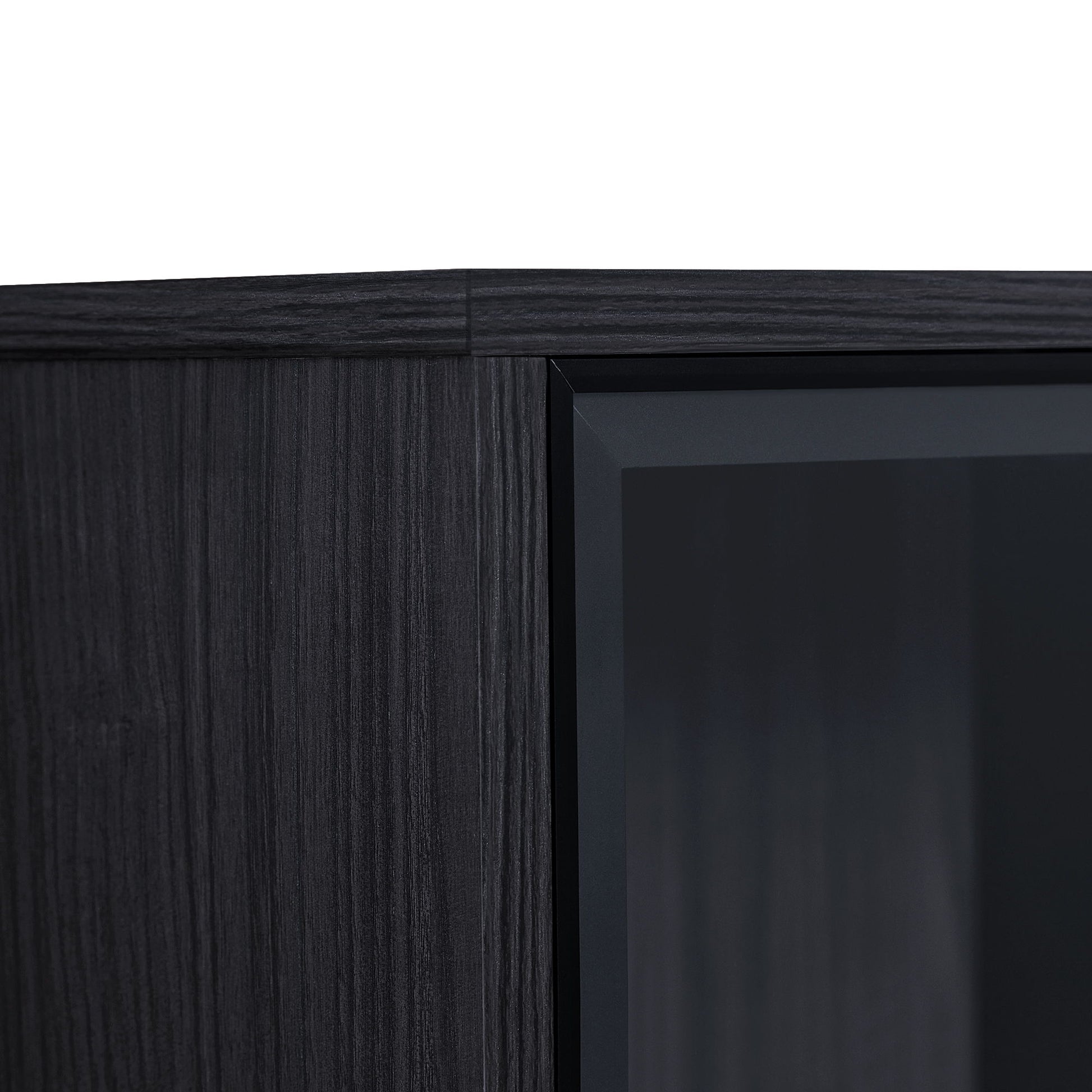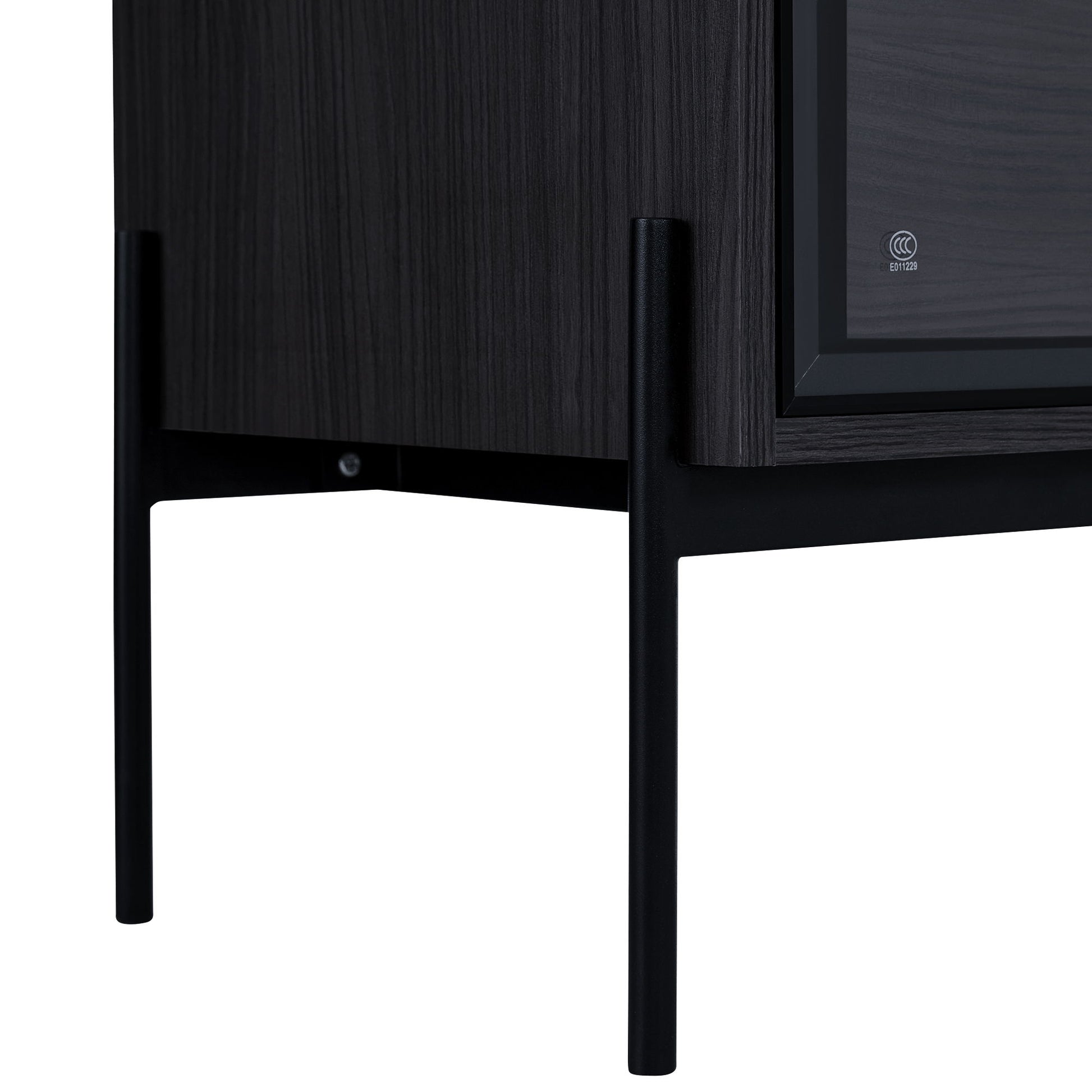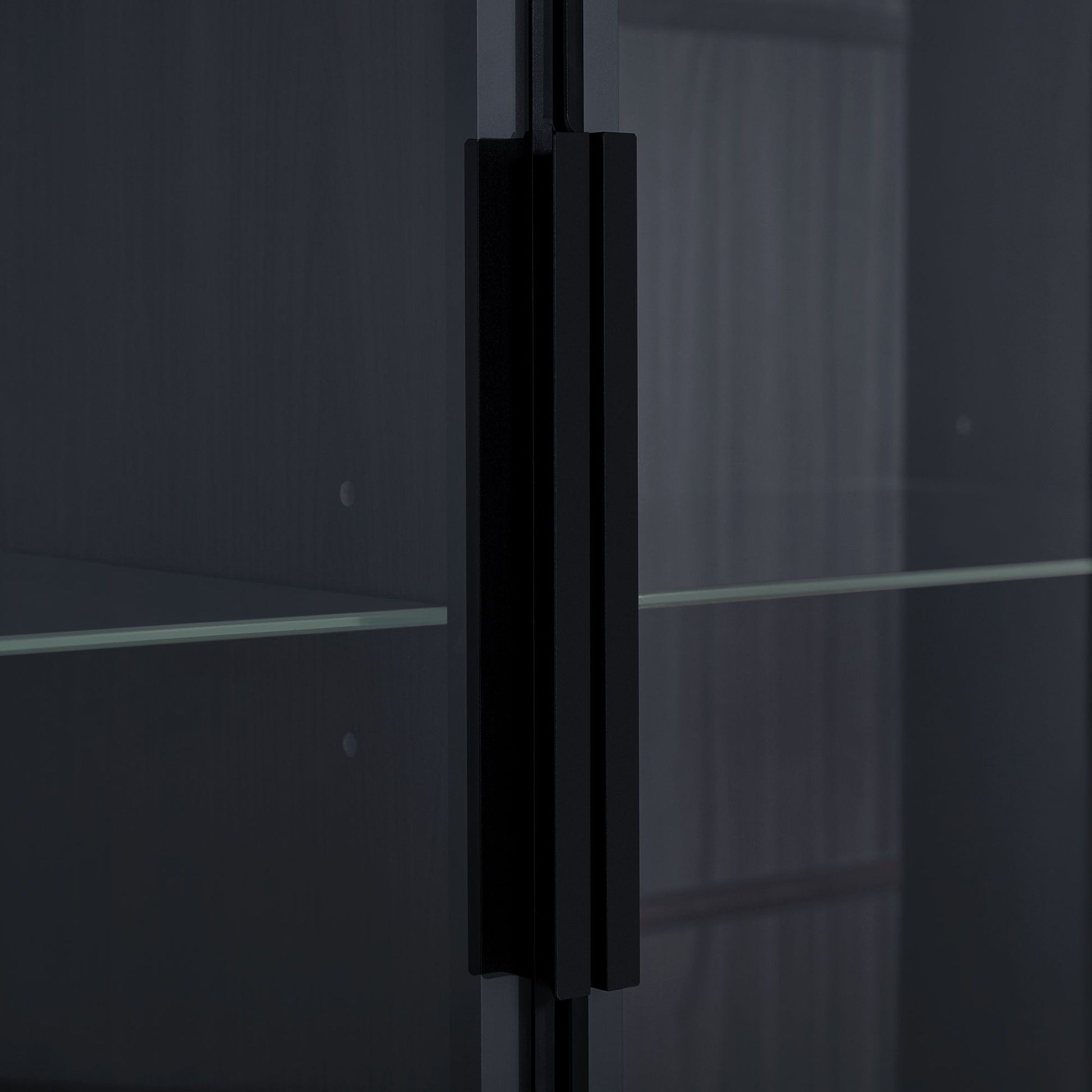 Modern Minimalist Style LED Curio Cabinet With Tempered Glass Door, Metal Legs - Black