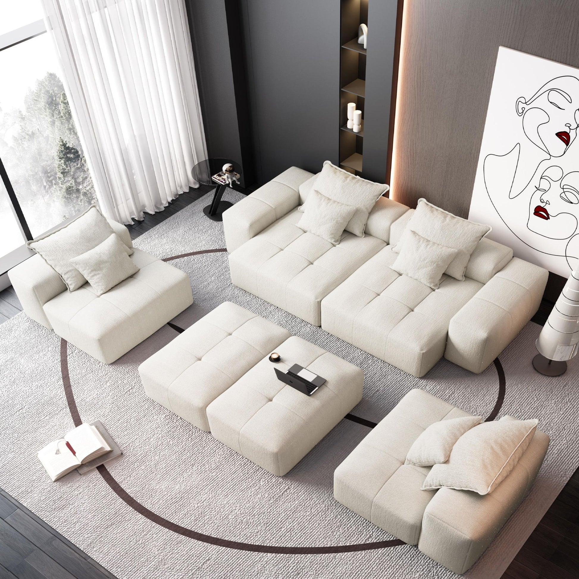Modern Oversized Diy Combination Modular Sectional Sofa With Pillows