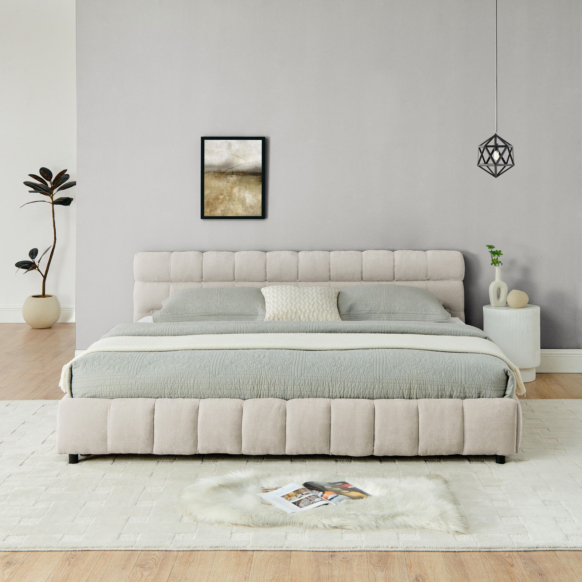 Modern Platform Bed Frame With Thick Chenille Fabric