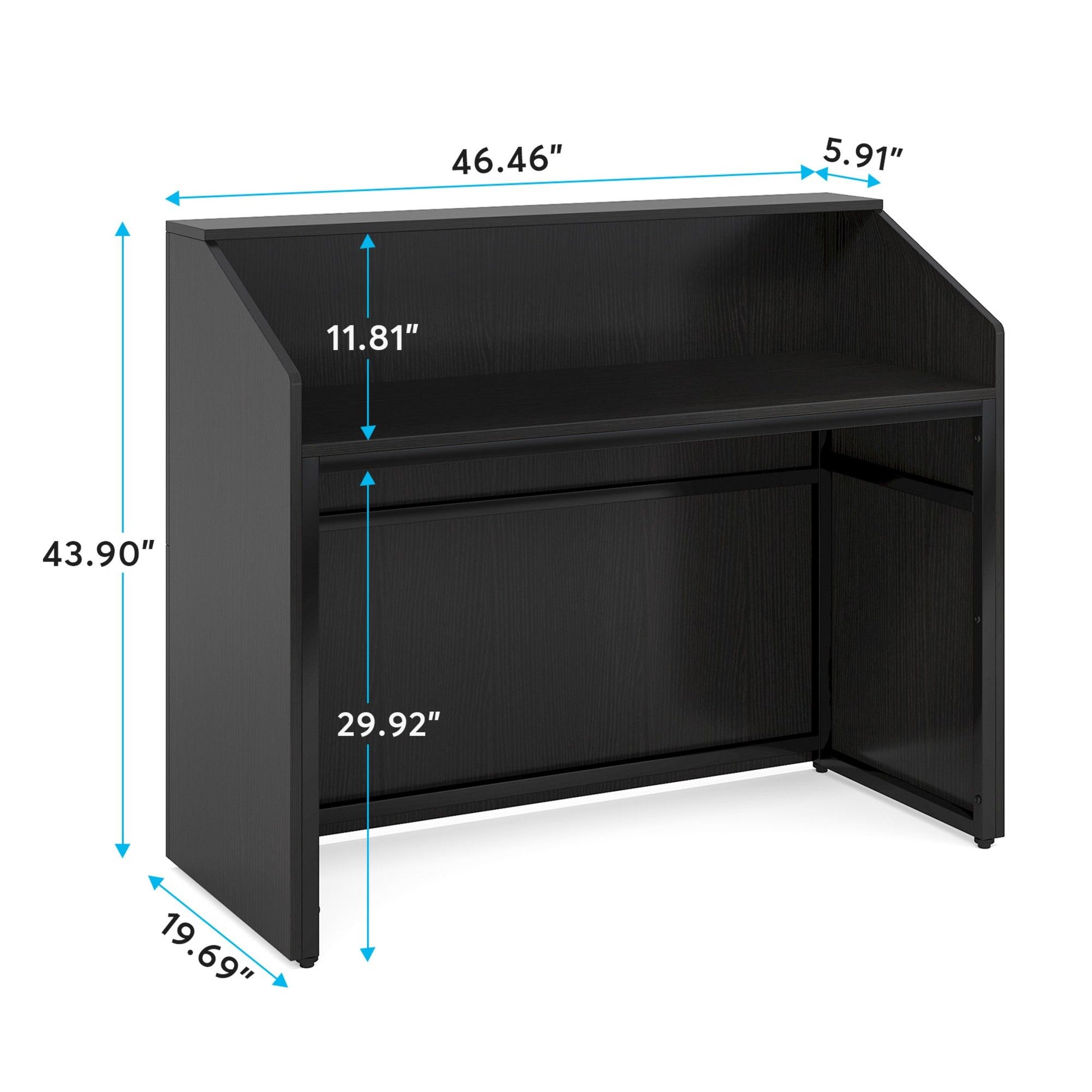- Functional Workspace: Generous 46.46"W x 19.69"D surface at 43.31" height supports laptop, register, and display items.