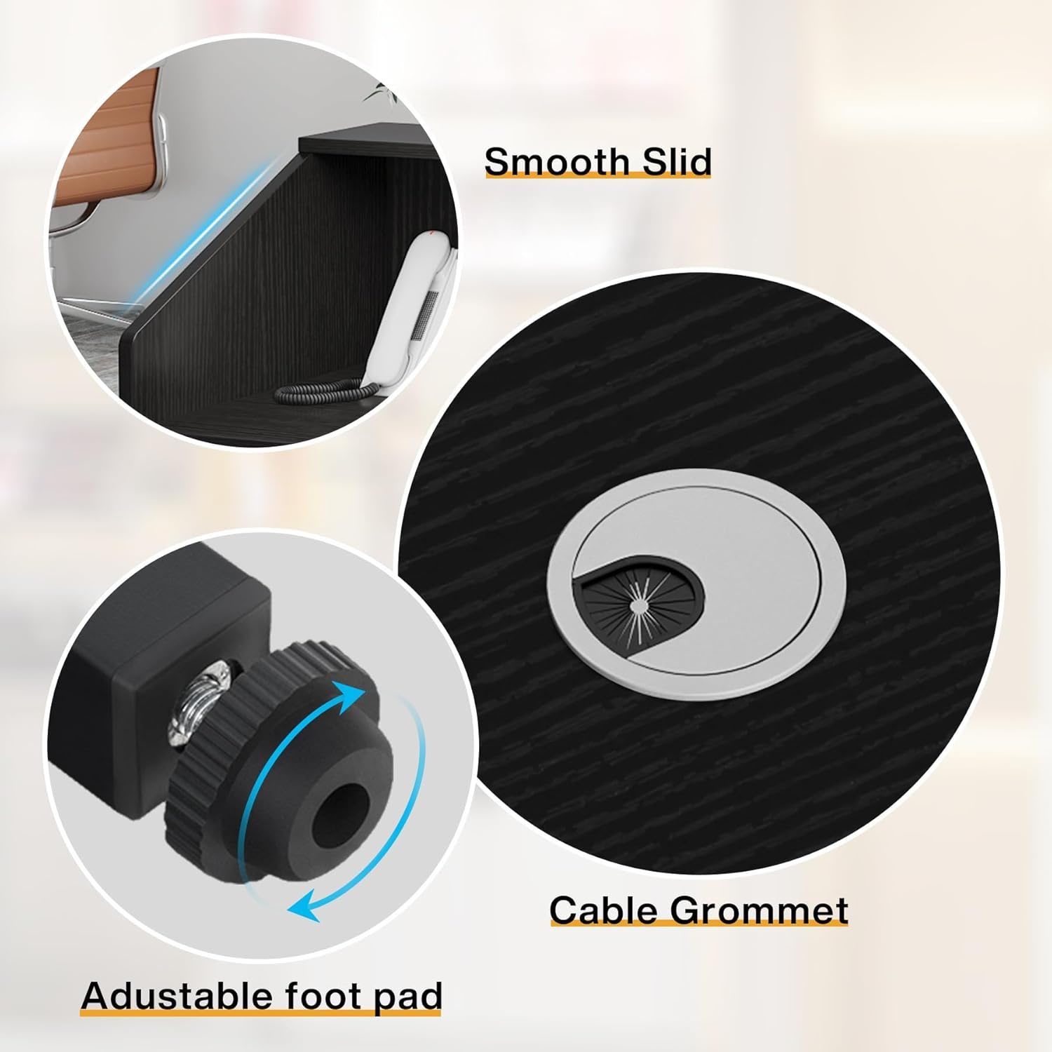 - Cable Management: Built-in grommet keeps cords hidden and organized for a clutter-free, professional appearance.