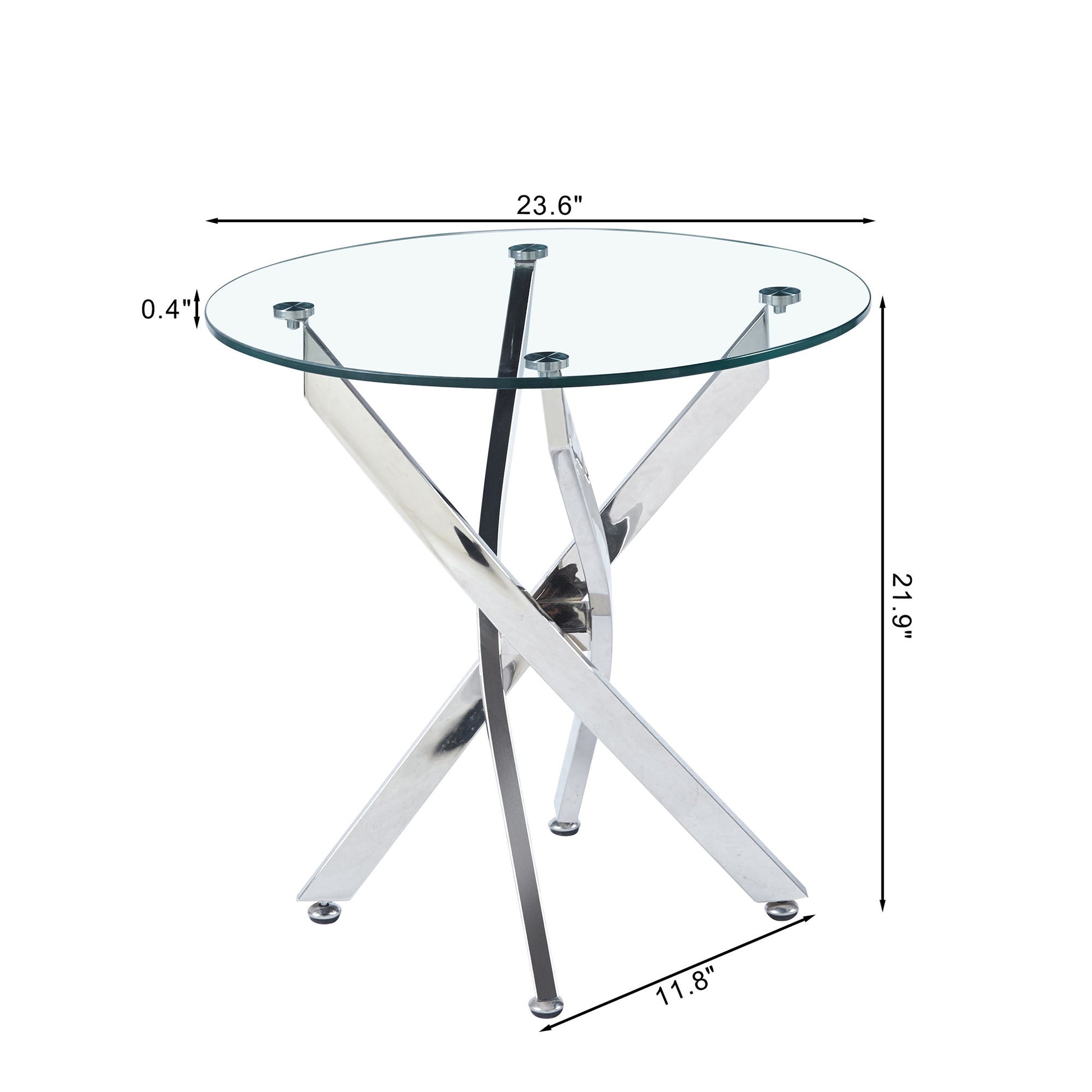 Modern Round Tempered Glass End Table With Chrome Legs - Silver