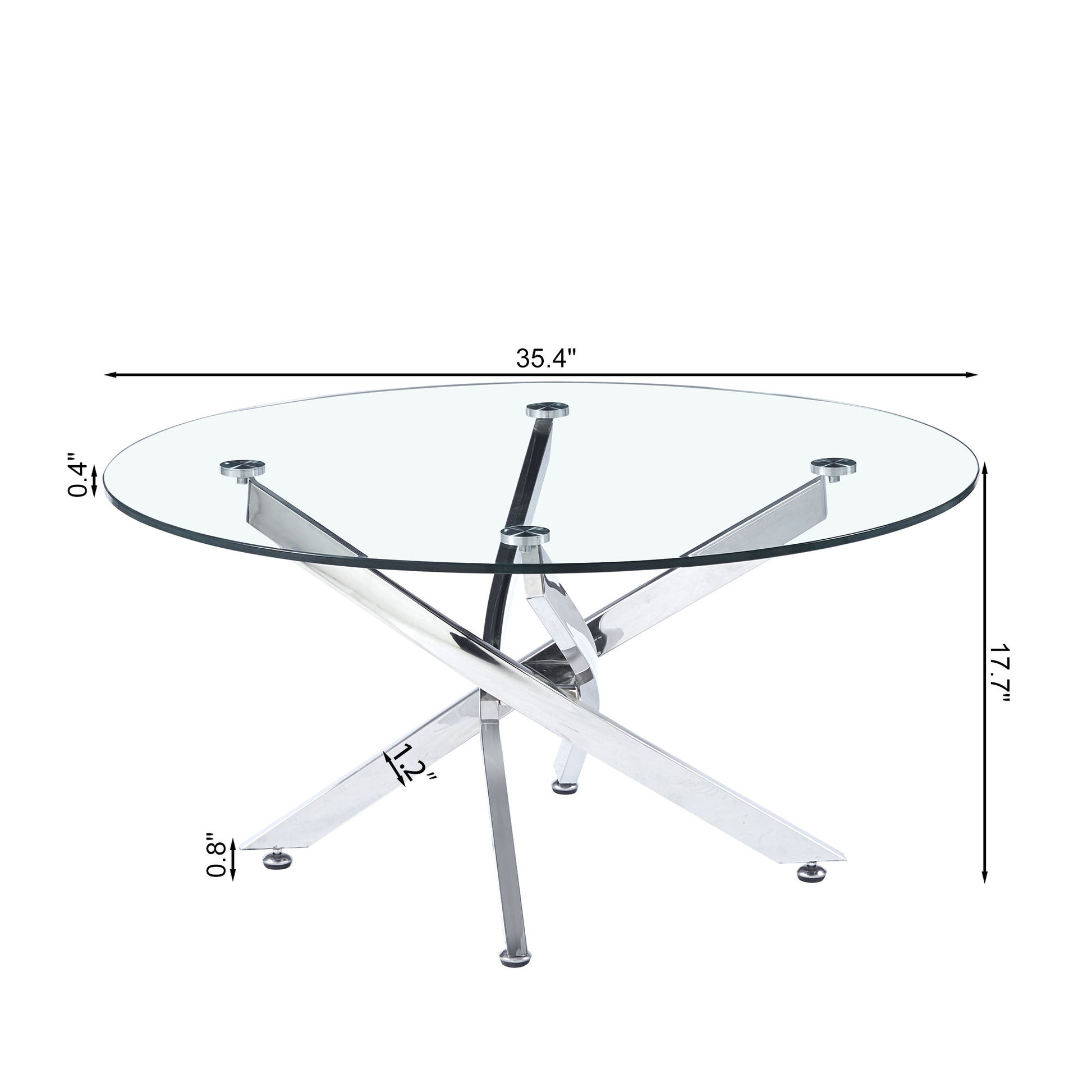 Modern Round Tempered Glass Coffee Table With Chrome Legs - Silver
