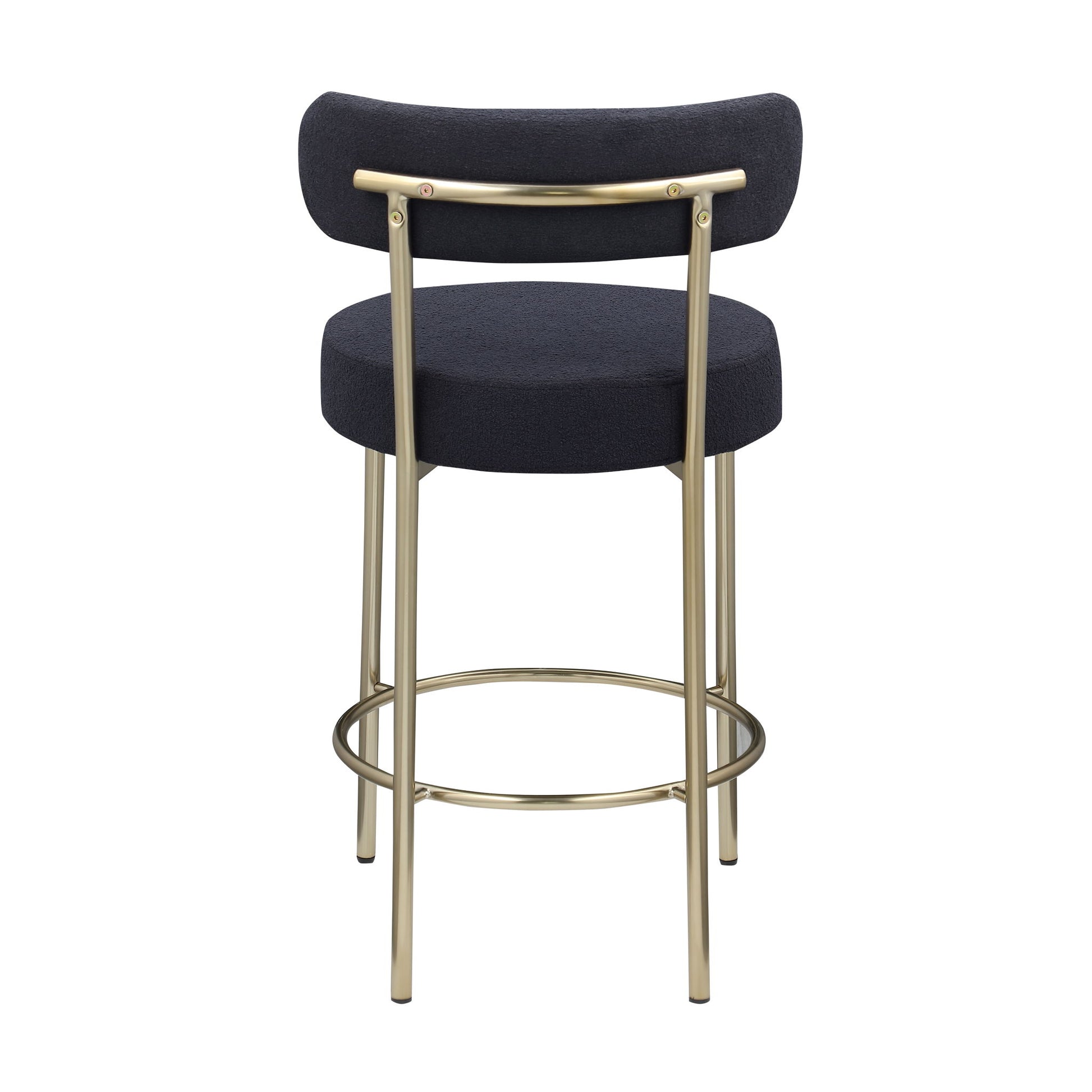 Modern Sherpa Counter Height Stools (Set of 2), Uphsoltered 26" Seat Height Barstools With Brushed Brass Metal Legs Round Low Back Kitchen Stools With Footrest For Dining Room - Black