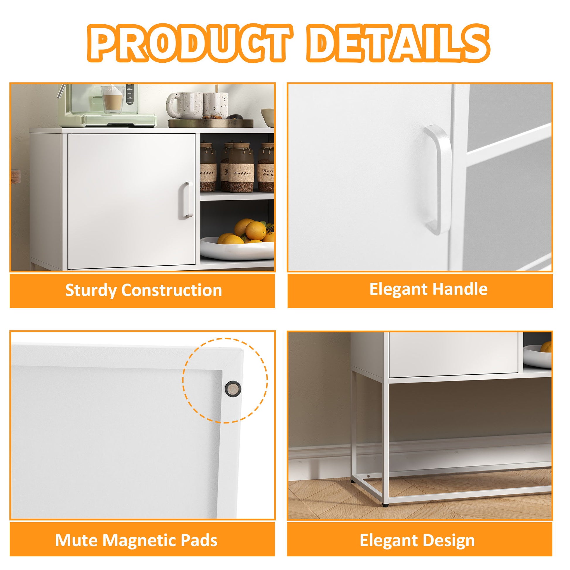 Modern Sideboard Buffet With Plenty Of Storage Space, Anti-Tilt Mechanism, Elegant Handles, Silent Magnetic Closures And Eco-Friendly Finishes For Kitchen, Dining Room, Bed Room And Living Room - White