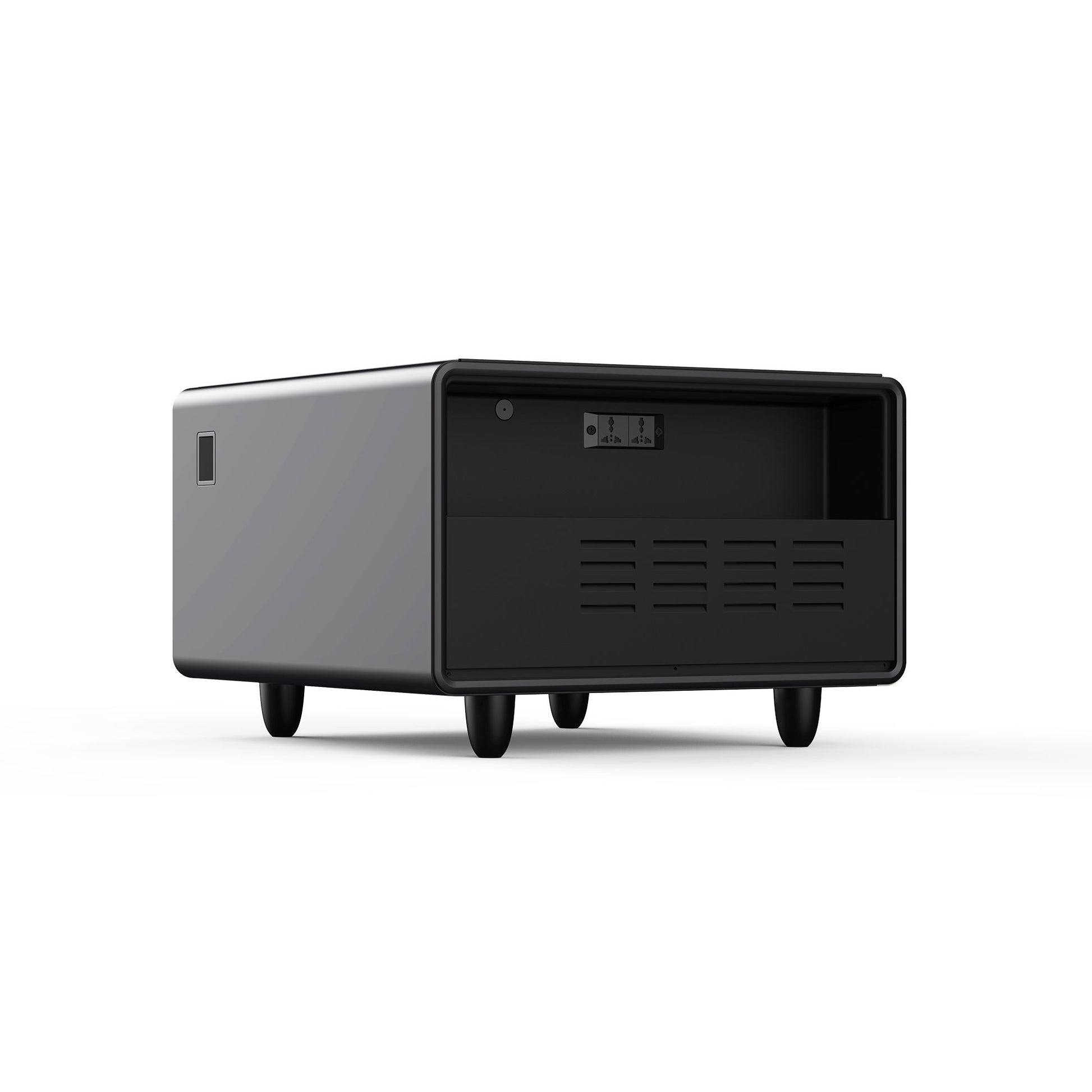 Modern Smart Side Table With Built-In Fridge, Wireless Charging, Temperature Control, Power Socket, USB Ports, Outlet Protection, Induction Light - Black
