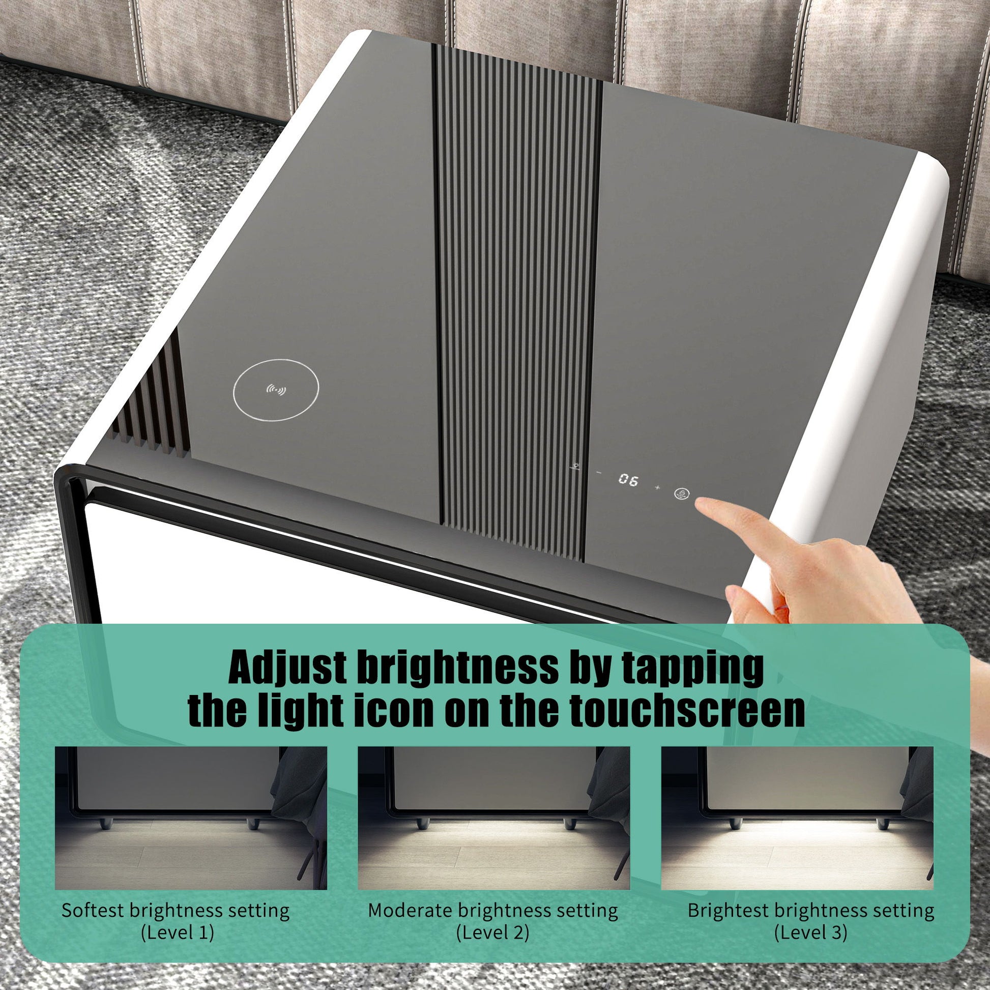 Modern Smart Side Table With Built-In Fridge, Wireless Charging, Temperature Control, Power Socket, USB Ports, Outlet Protection, Induction Light