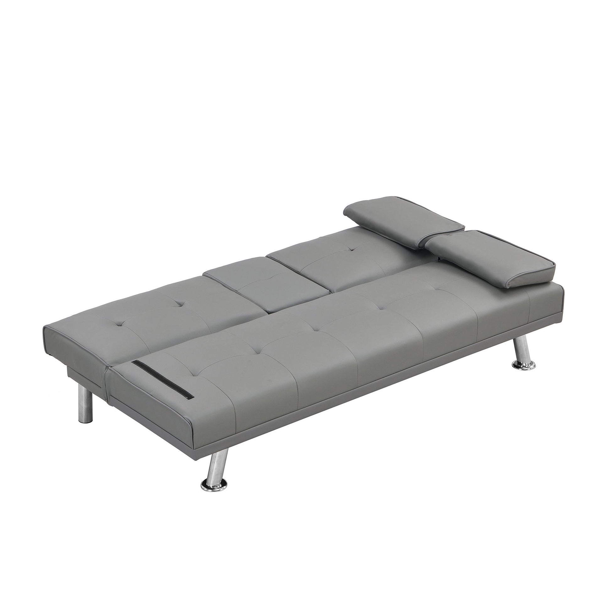 Modern Sofa Bed With Armrest 2 Holders, Wood Frame & Stainless Leg, Futon Style - Gray