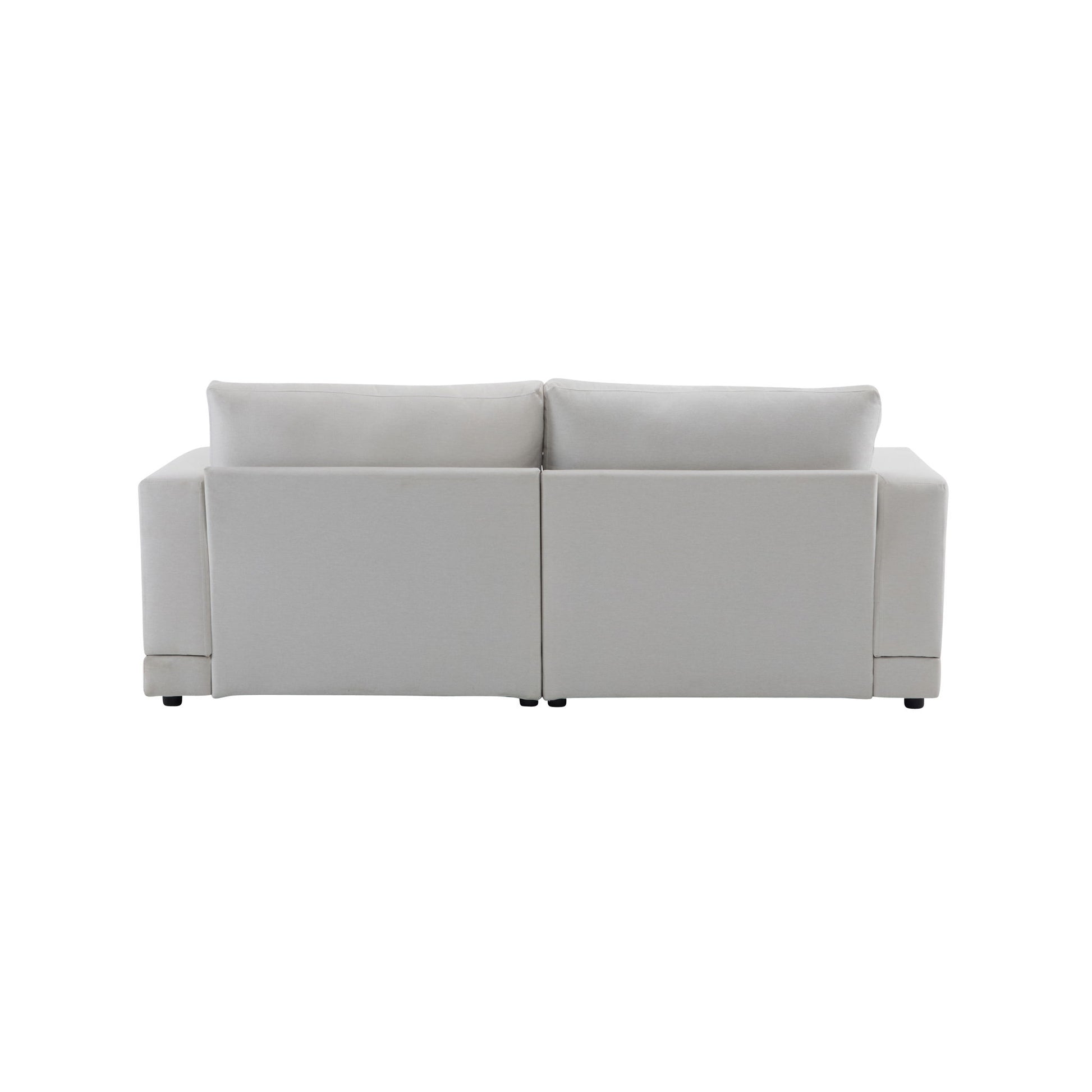 Modern Square Arm Sofa With Soft Fabric Upholstery, Deep Cushions, Sturdy Wooden Legs - White