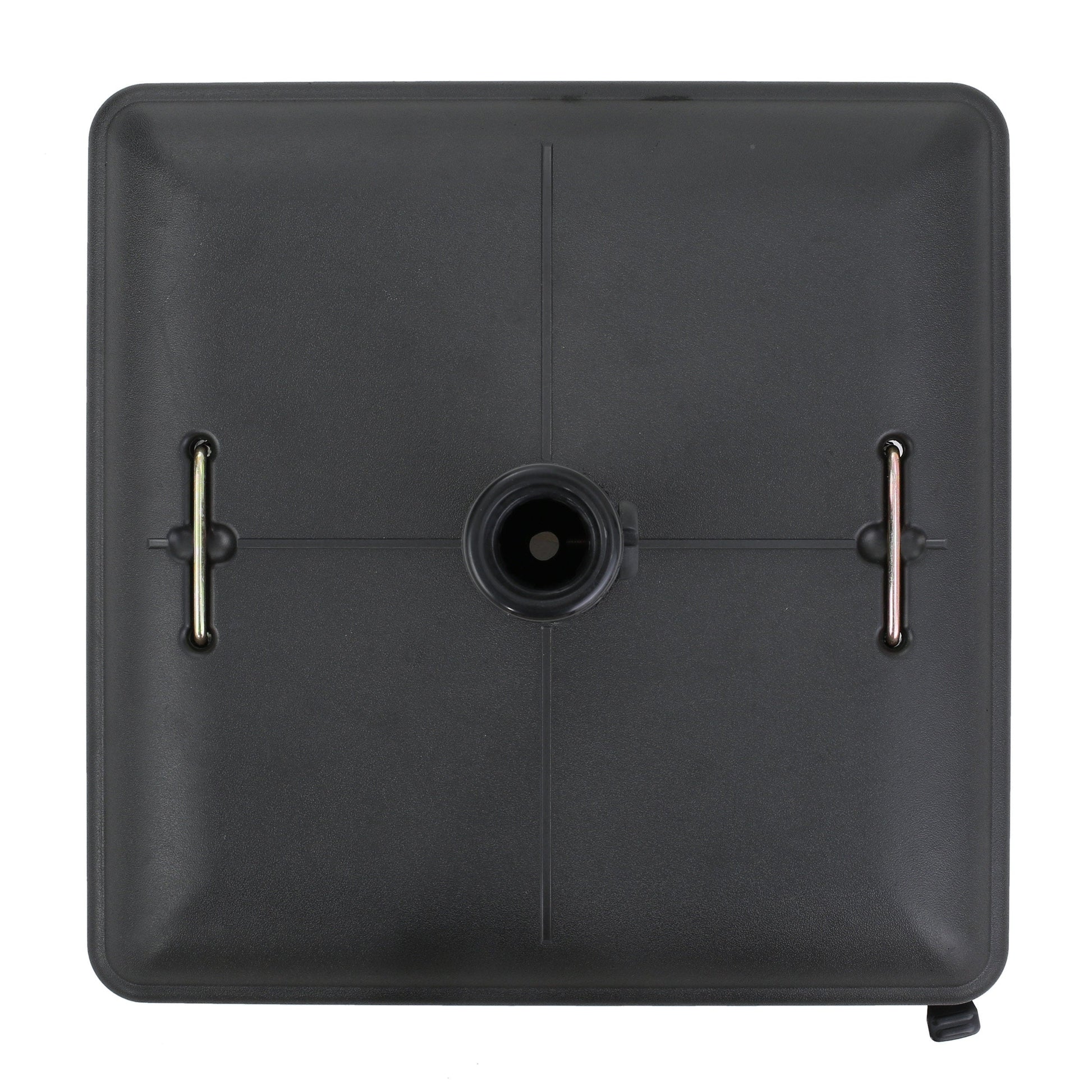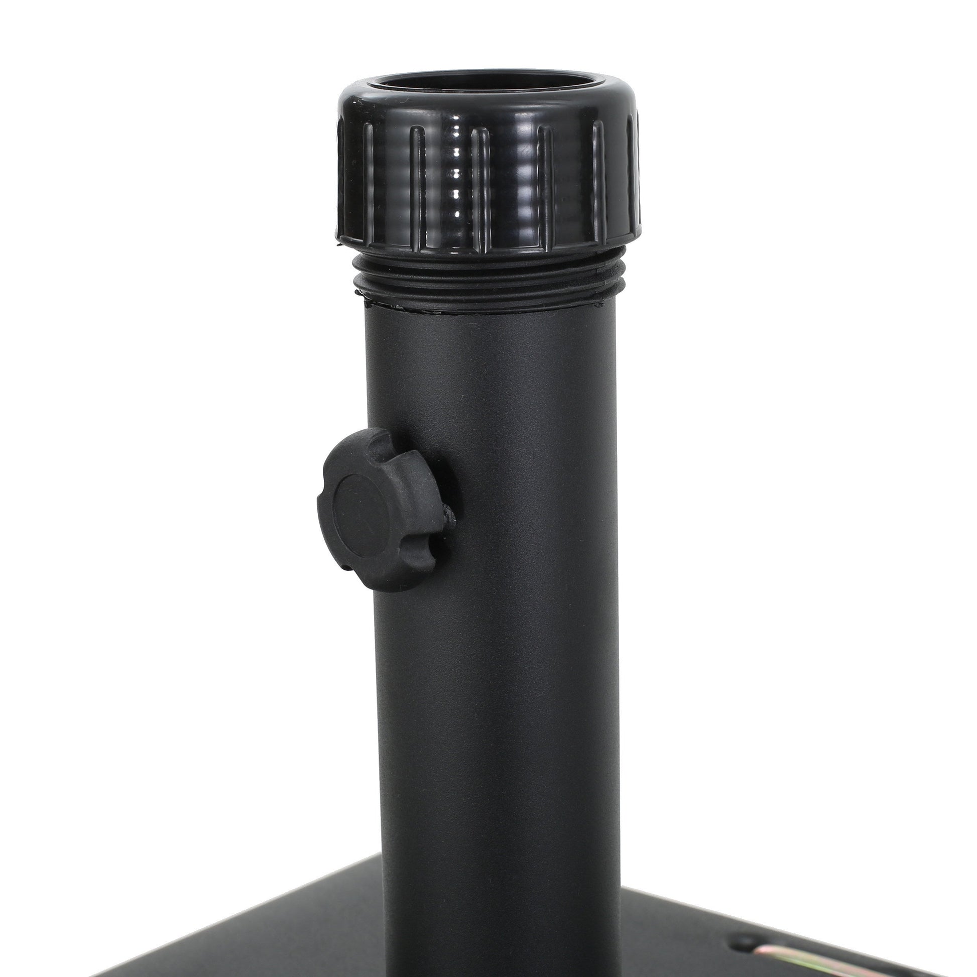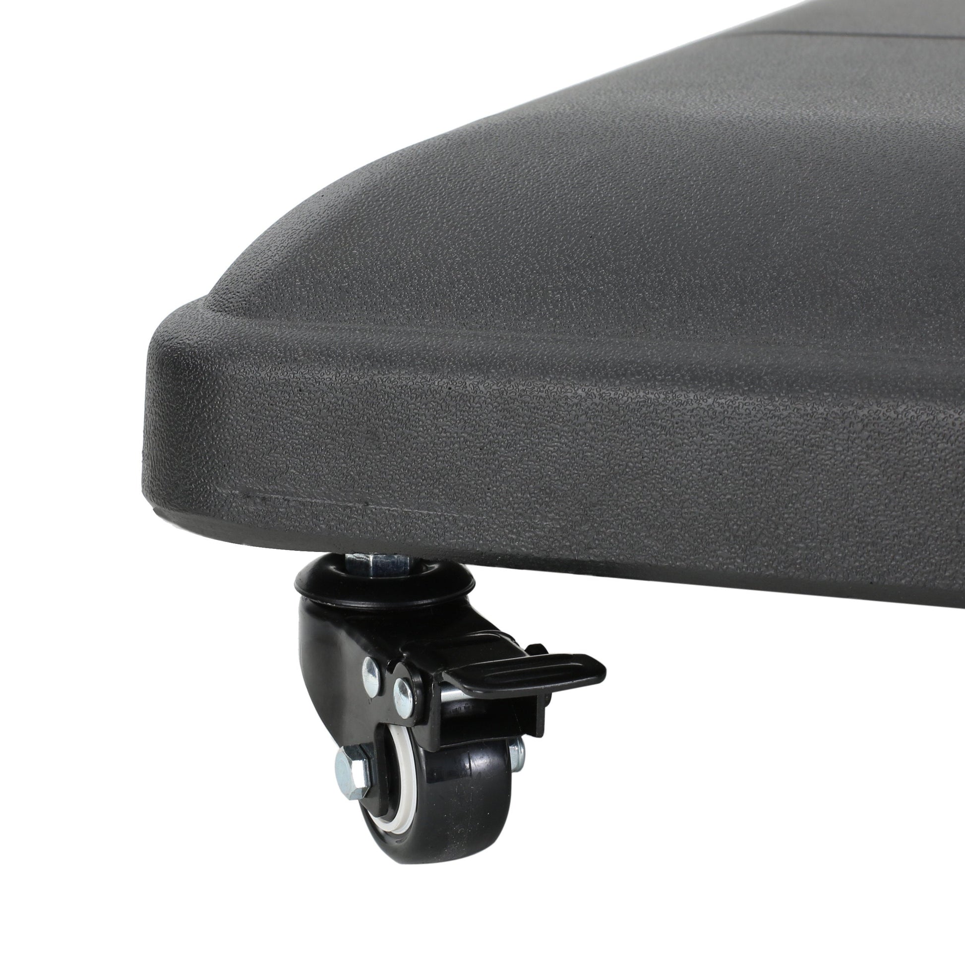 Secure your outdoor umbrella with this modern square wheelie base, ideal for patios and outdoor seating areas. Its sleek black concrete design provides both stability and style.
