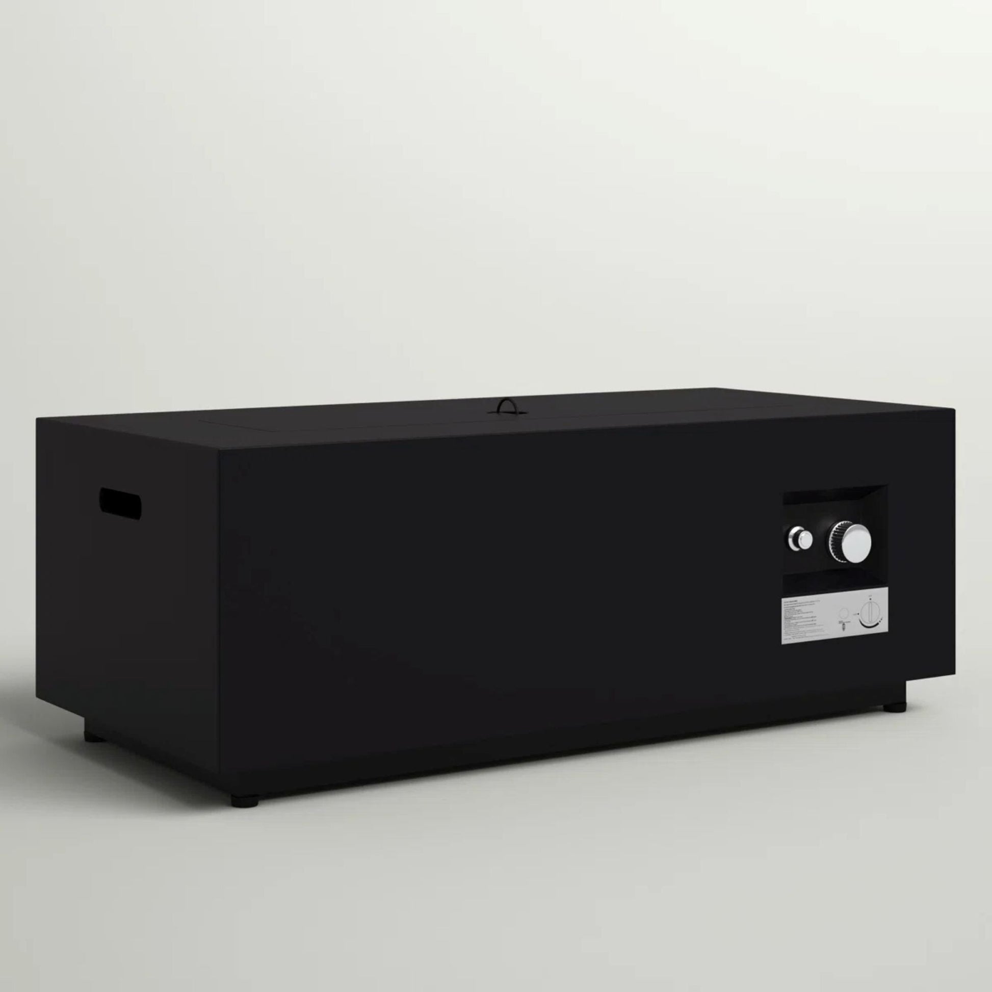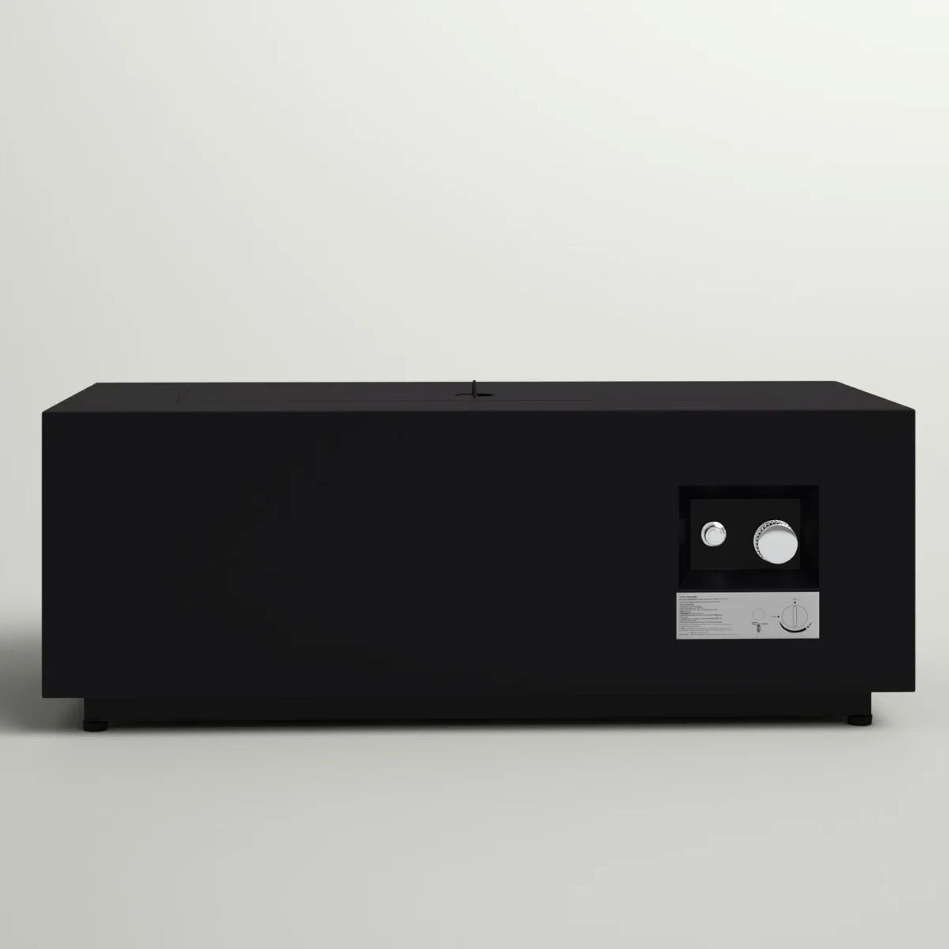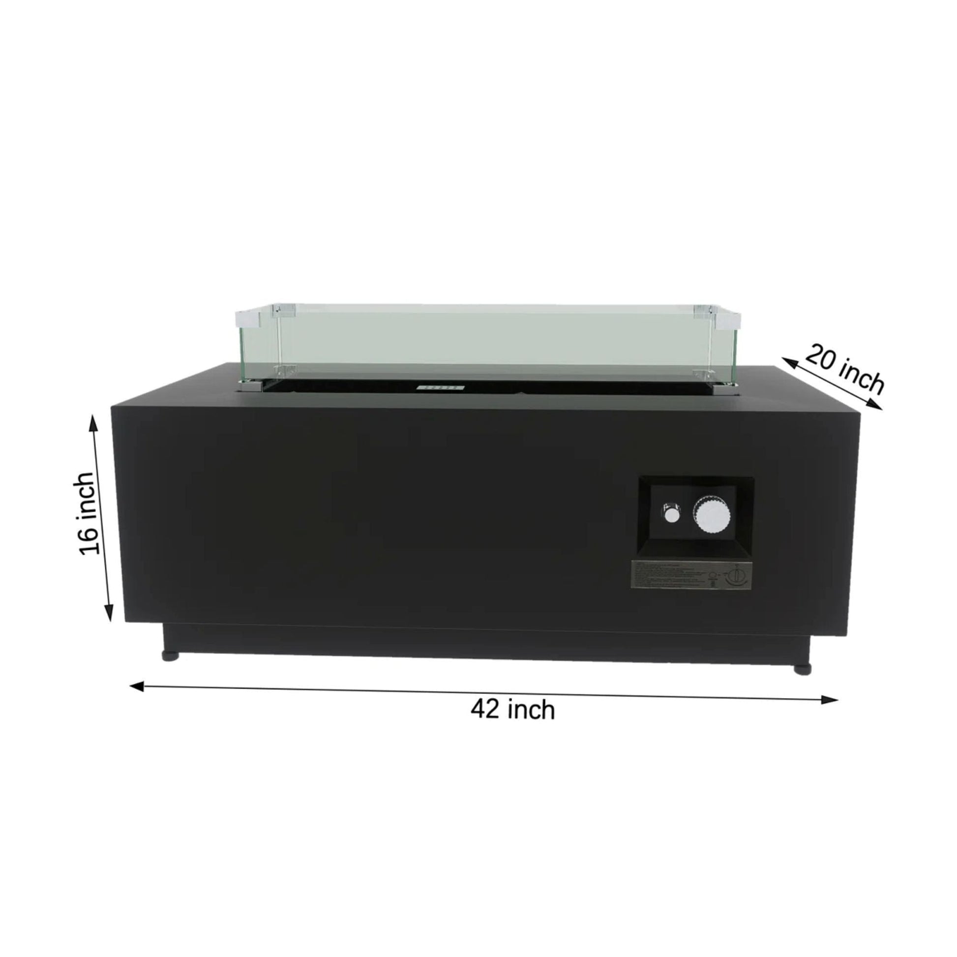 - Contemporary rectangular design featuring transparent glass shields for effective firelight diffusion.