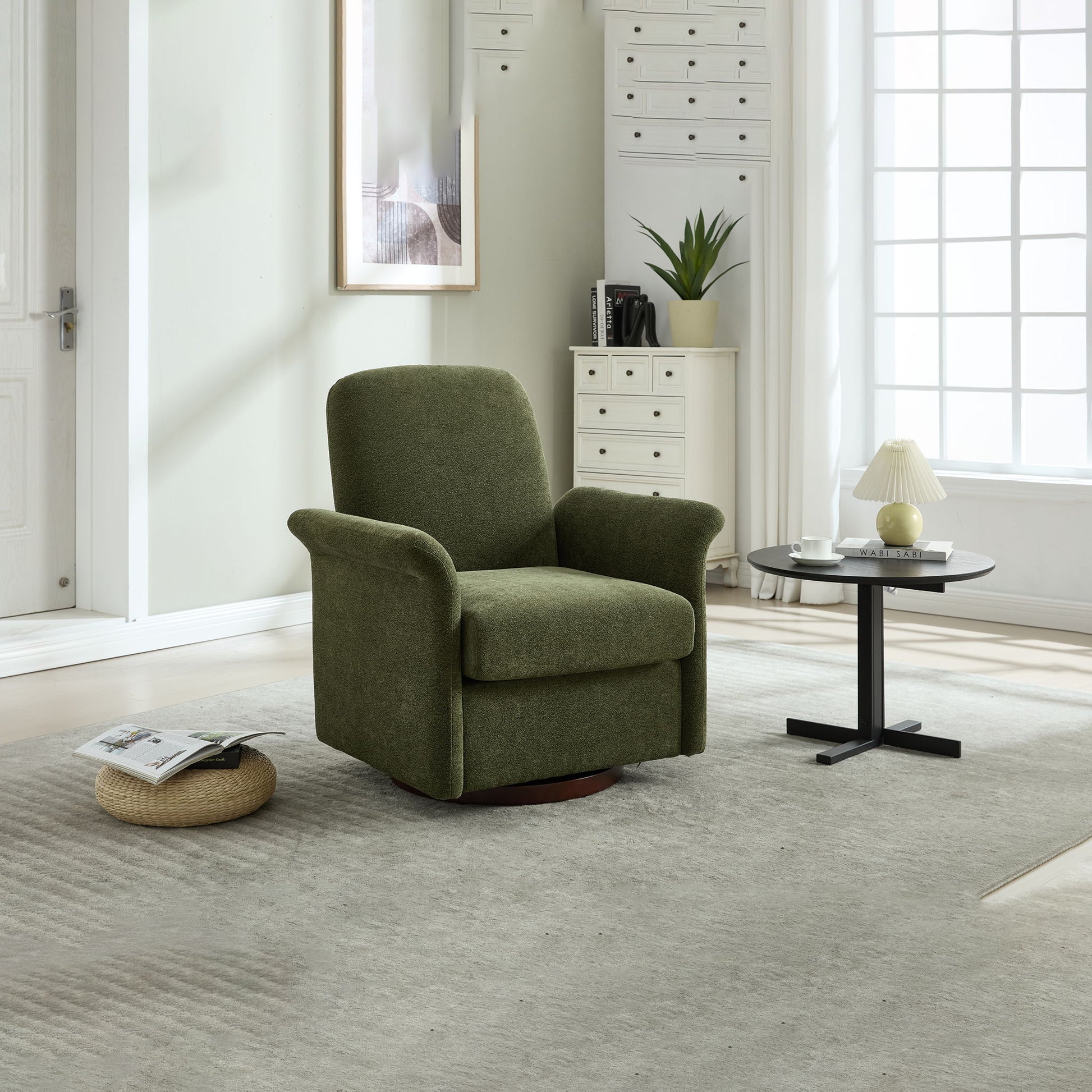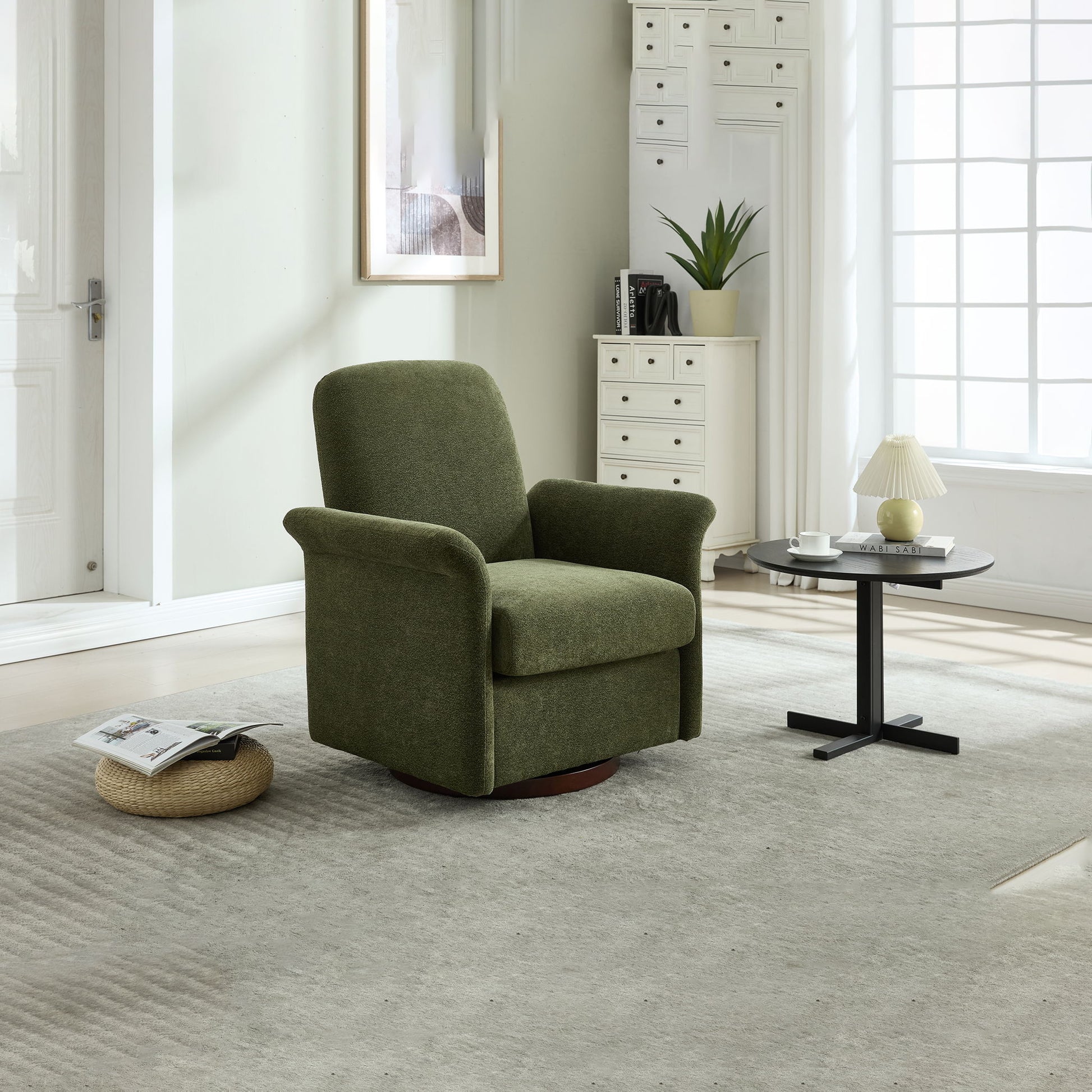 Swivel Barrel Accent Chair For Living Room - Dark Green