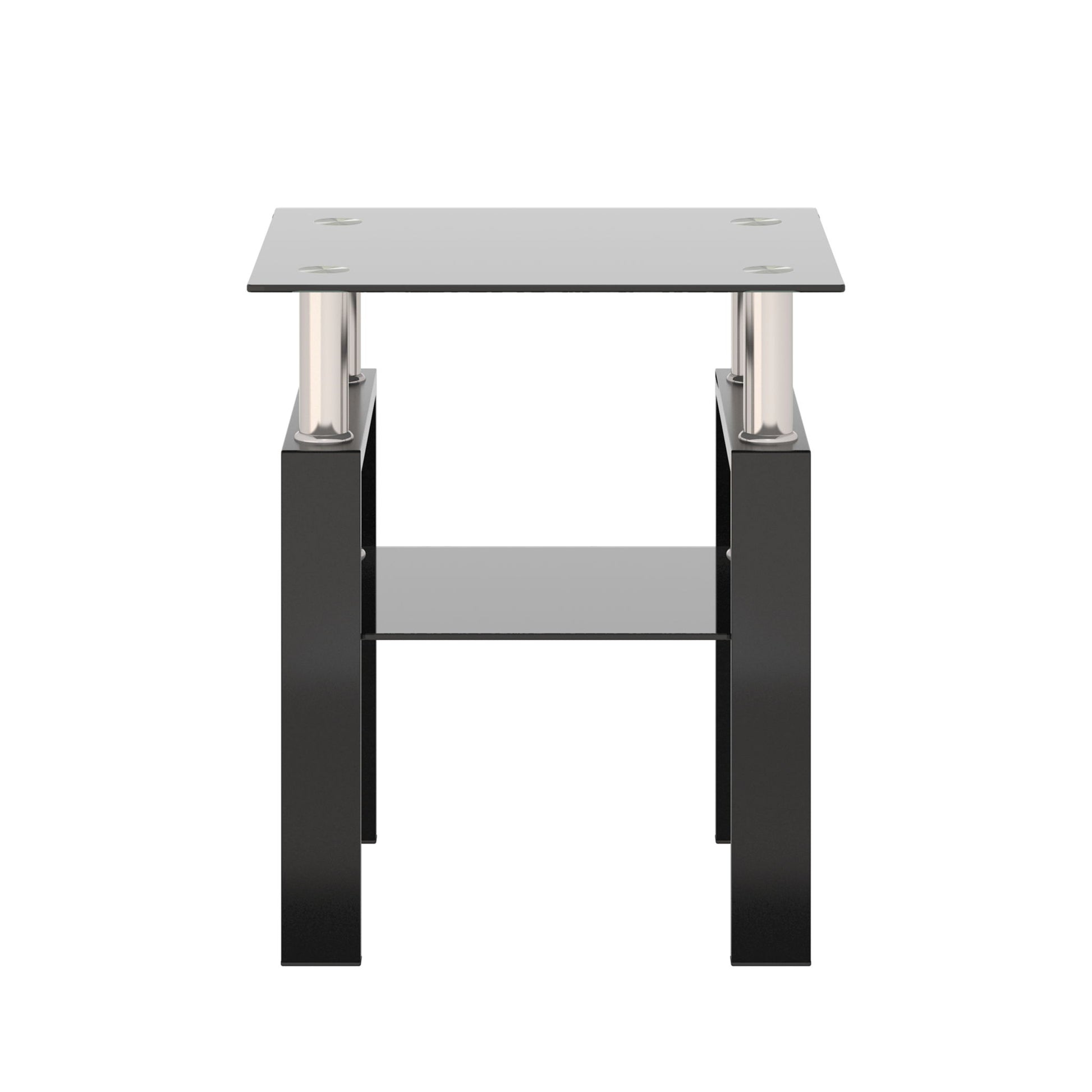 Modern Tempered Glass Tea Table, End Square Table For Living Room - Black