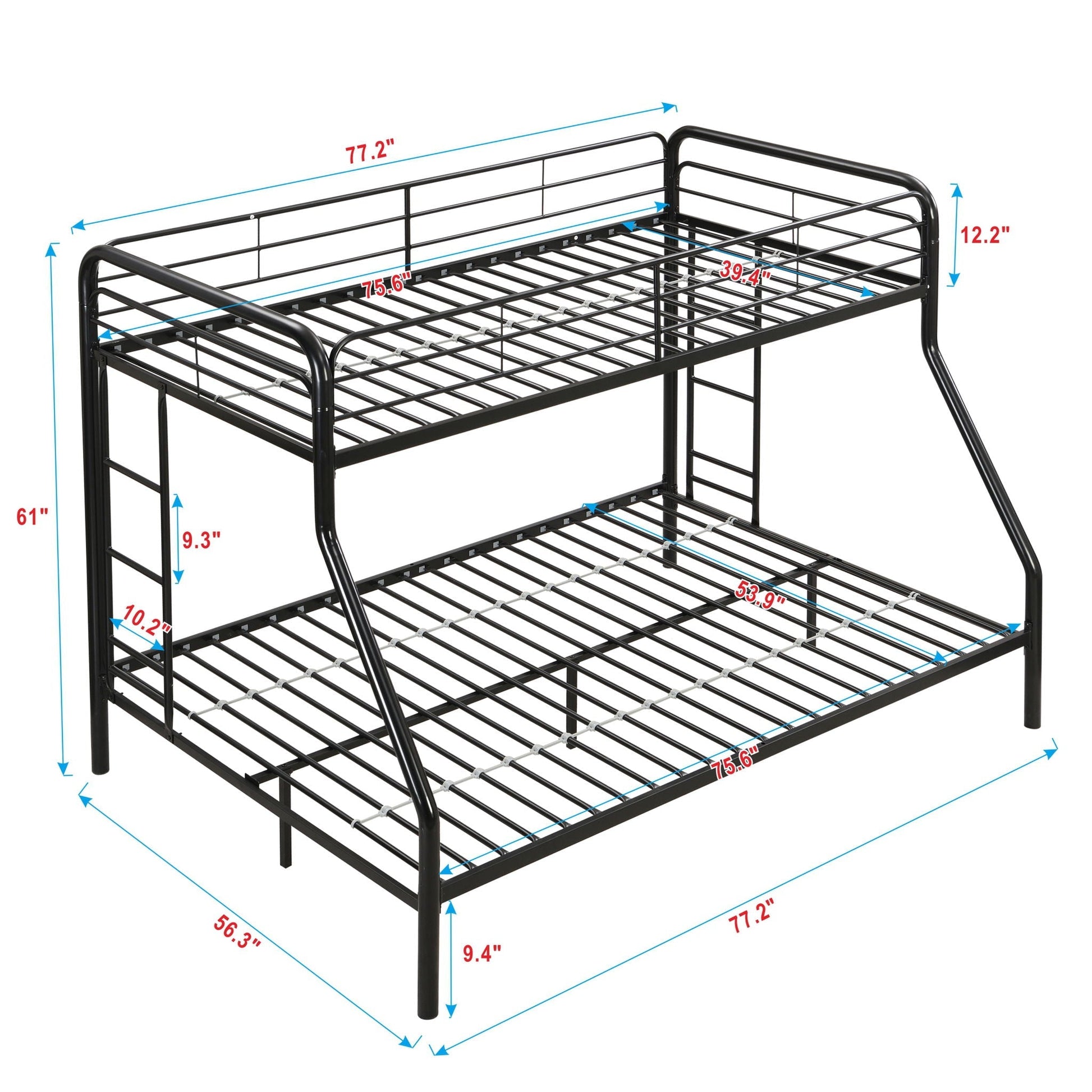 Modern Twin Over Full Metal Bunk Bed With Trundle And Dual Side Ladder And Metal Design - Black / Brown