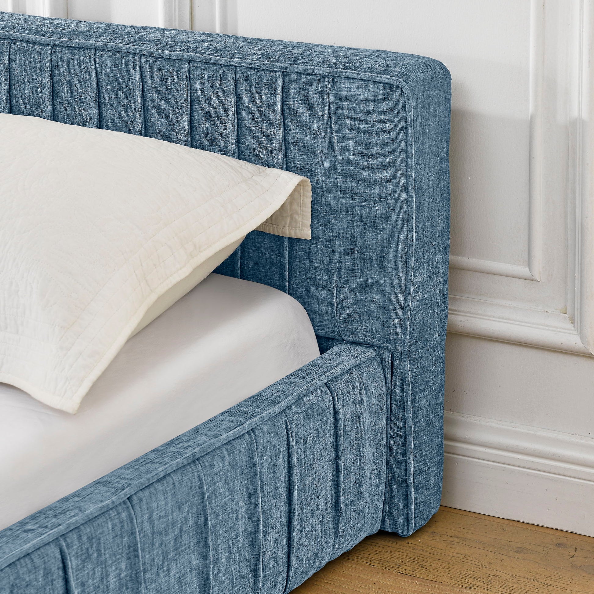 Modern Upholstered Platform Bed Frame With Pleated Design